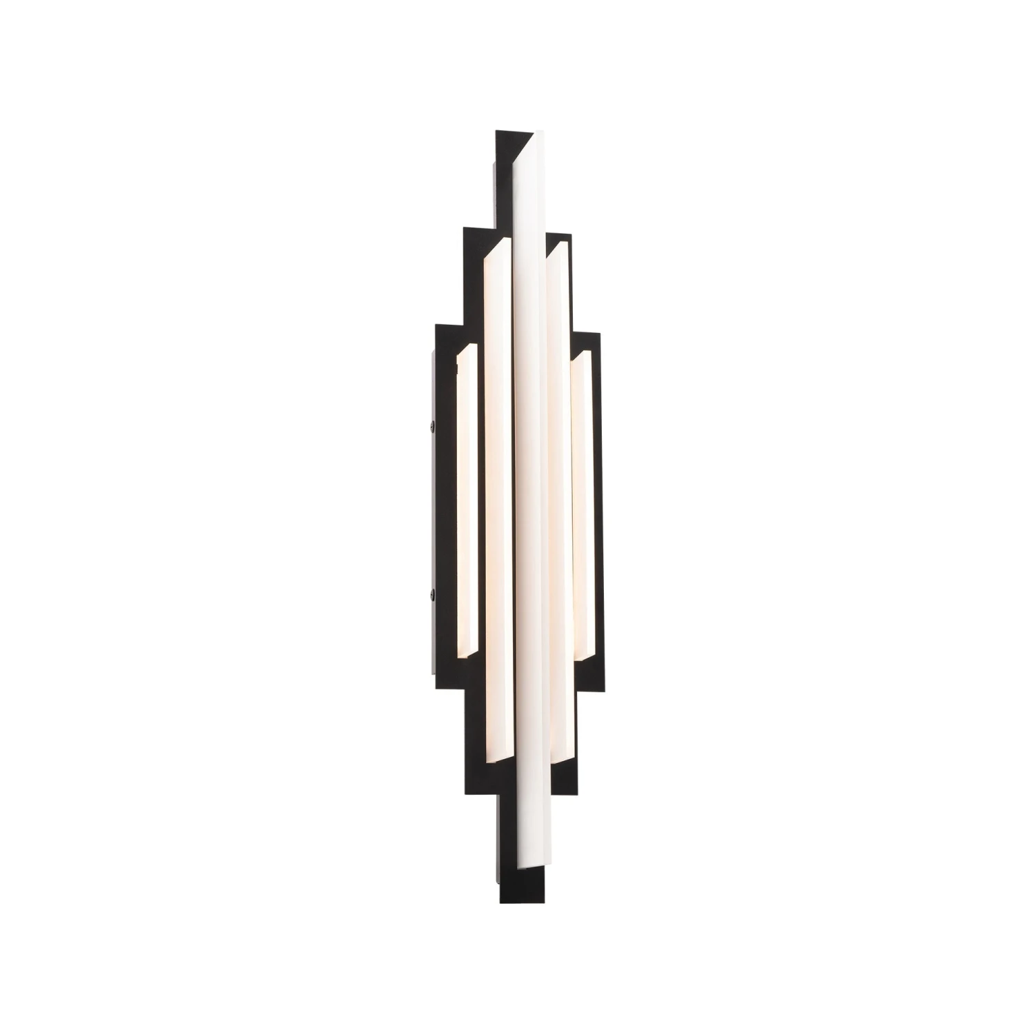 The Nouveau LED Wall Light from dweLED reflects principles of classic Art Deco style as it brings an edgy feel to contemporary and transitional spaces. Dimmable energy-efficient illumination shows through edge-lit acrylic in a diffuser with structure and a careful alignment, as a black finish metal body creates a refining outline.