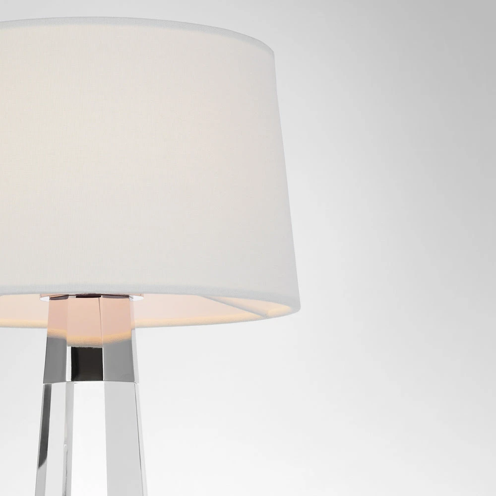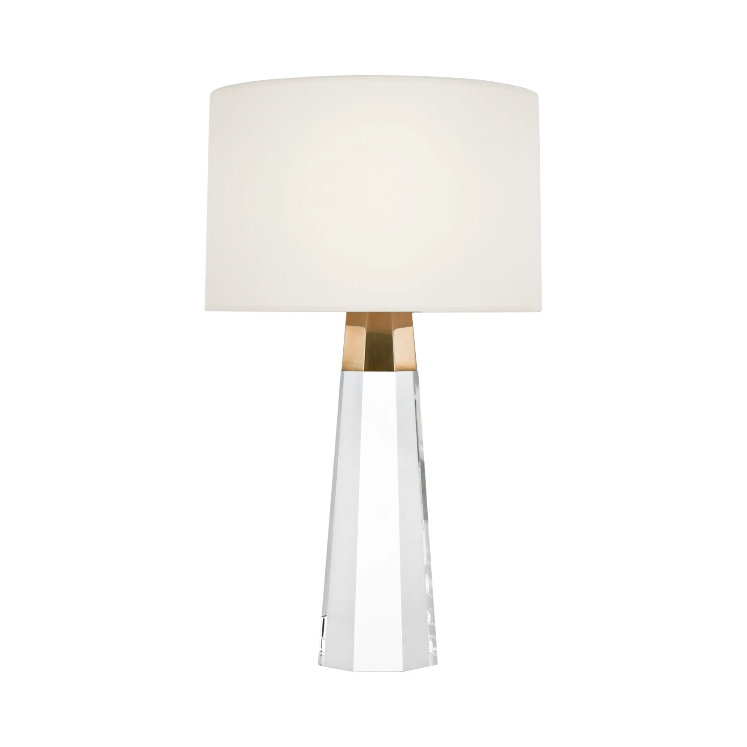 The Olsen LED Rechargeable Table Lamp from Visual Comfort Signature repurposes an earthy aesthetic, captivating and yet natural. Its conical body is faceted, dressed up with metal and topped with a clean fabric shade. Energy-efficiency adds a notch to its functionality level.