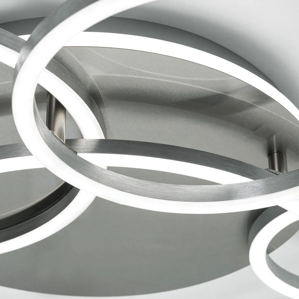 Dancing with cosmic brilliance, the Orbit LED Flush Mount Ceiling Light from AFX Lighting radiates a soft, ethereal glow with its four-ring design. The bottom ring illumination casts a gentle, inviting light that transforms the atmosphere, adding depth and intrigue to any space. This modern fixture blends bold design with graceful elegance, creating a captivating focal point in your home.