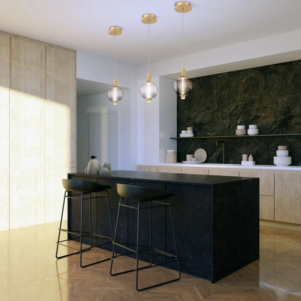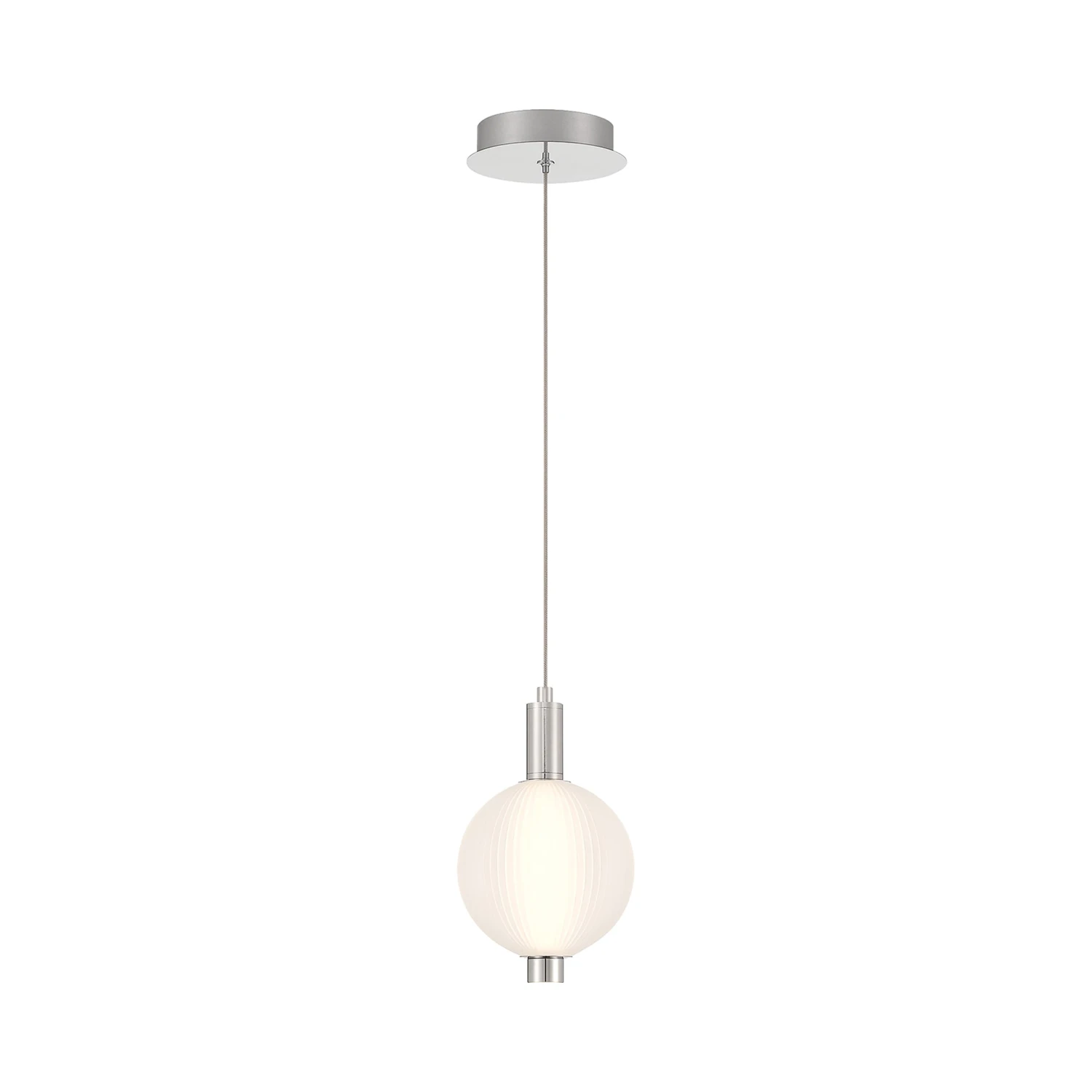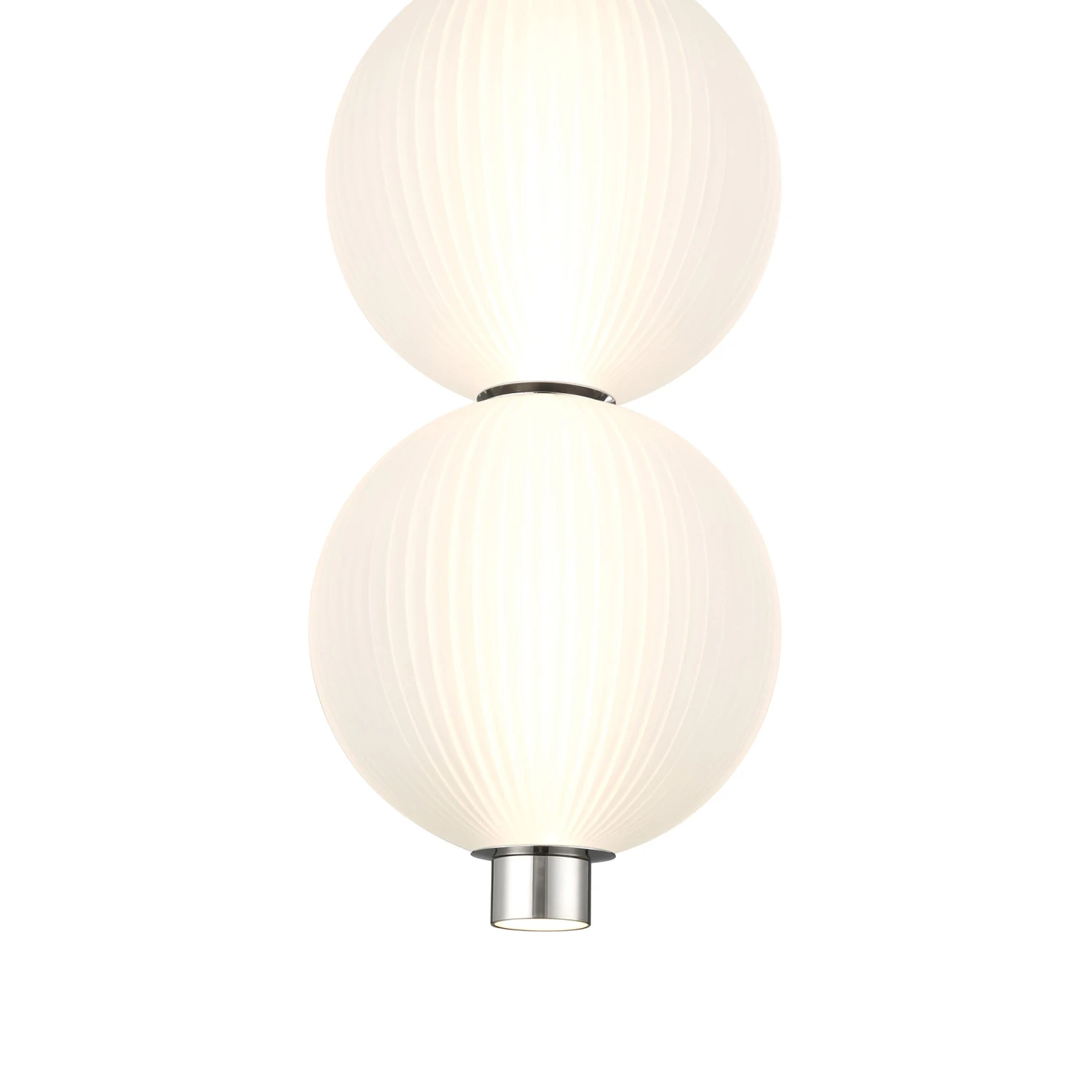 The Palmas LED Pendant Light from Eurofase emulates a bejeweled motif with classic and traditional charm. Modern design elements update a vertically oriented light fixture featuring textural ribbed glass spheres fashioning a spatial separation. Metal accents add enticing finish impact.
