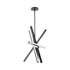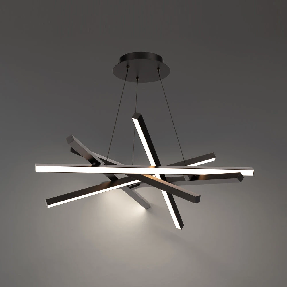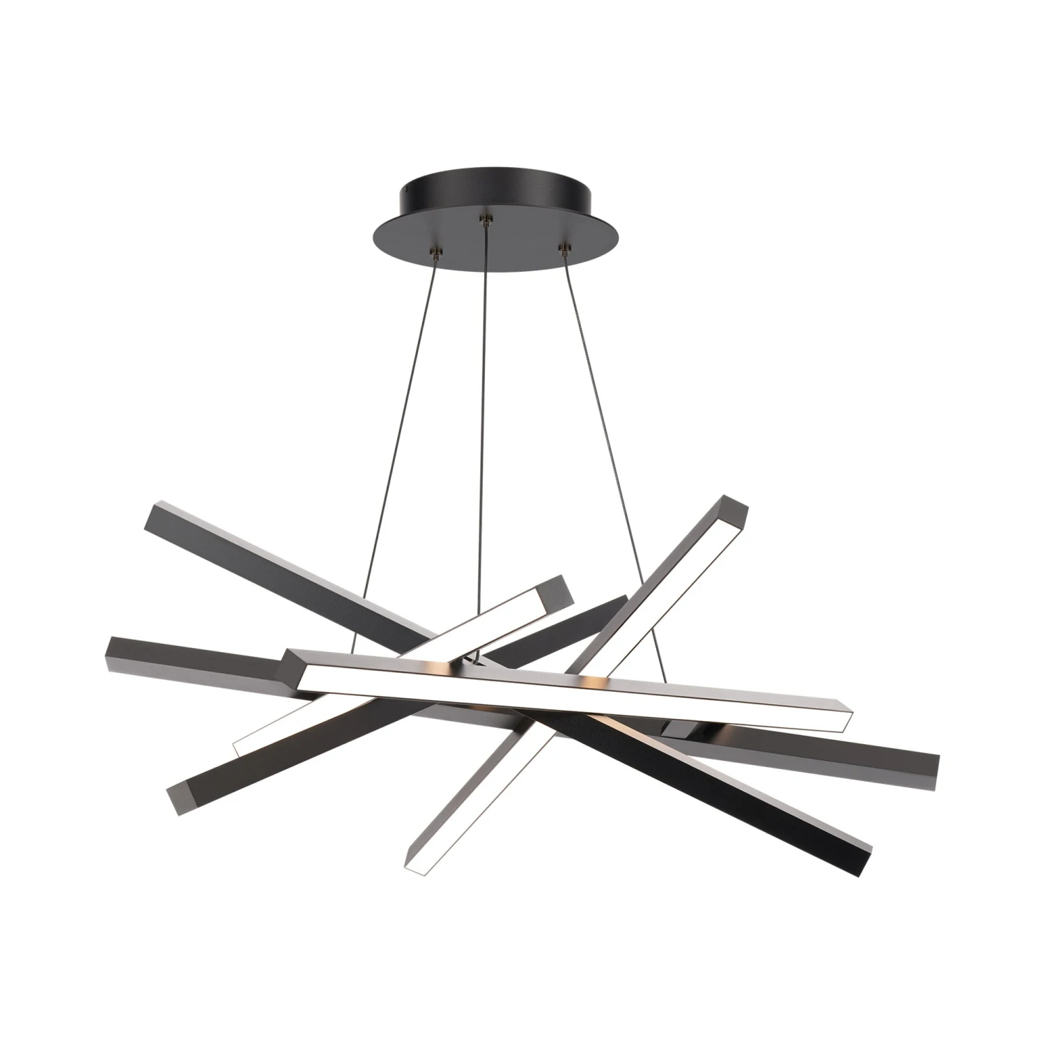 Juxtaposed rods create the engaging profile of the modern Parallax 731 LED Chandelier from dweLED. Energy efficient, it showcases an ultra-contemporary design that elevates simplicity to new heights. Glowing rods cast light in multiple directions, creating a rich ambiance over your dining table or in a foyer.