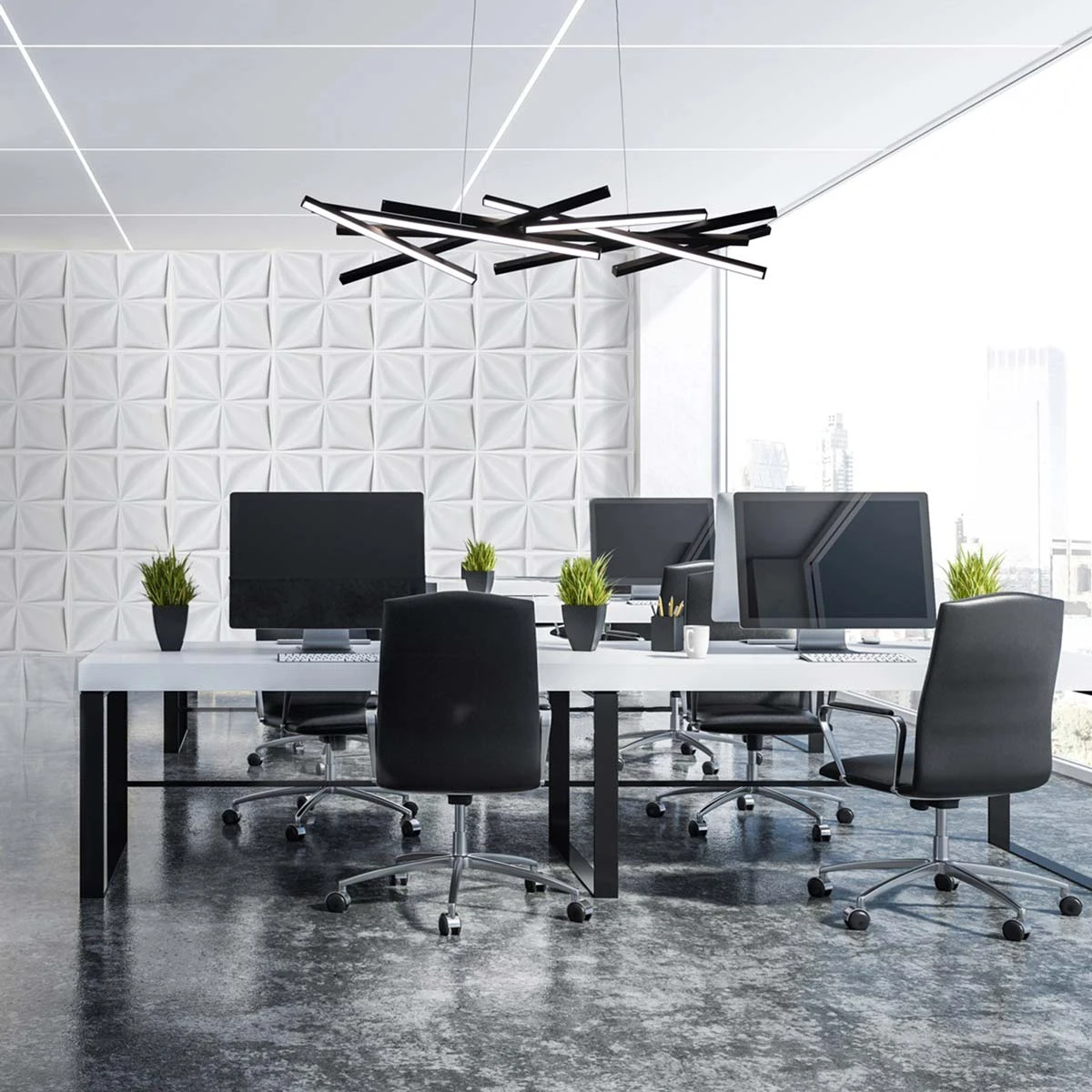 This Parallax LED Chandelier features a creative array of slender light bars arranged to create a unique, sculptural design with crisp lines. Ideal for making a statement in any space, it promises to transform the atmosphere.