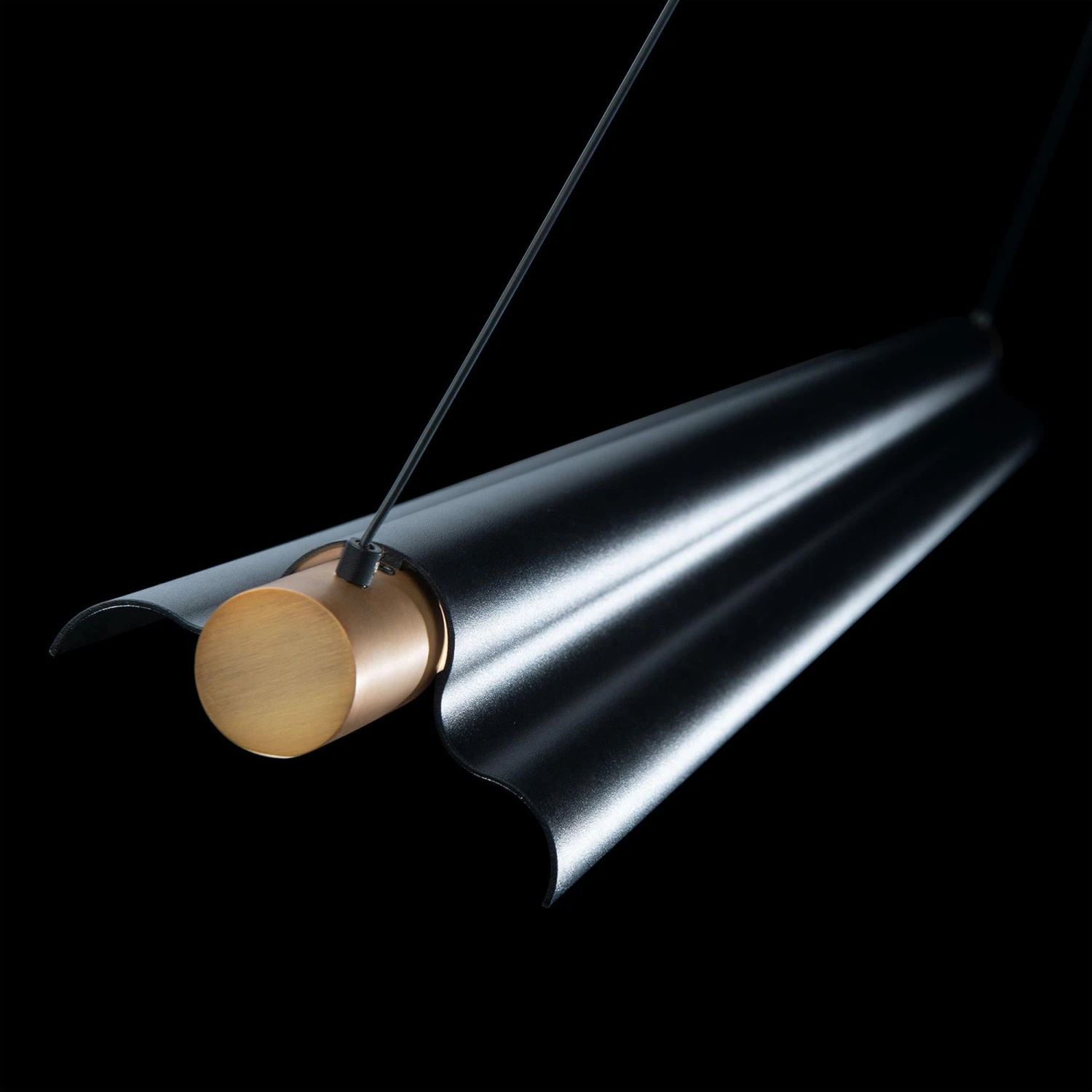 Curvy metal roof houses etched acrylic luminaire with undulating flair and visual excitement.