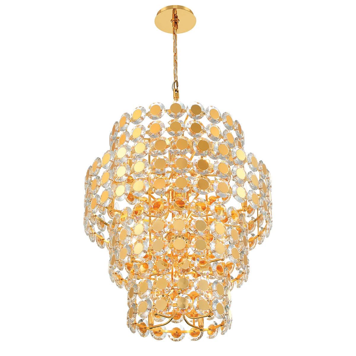 The Perrene Multi Tier Chandelier from Eurofase captures the ultimate show-stopping impact of glam that elevates any space to a setting of sophistication. Artisan in character, this extraordinary fixture stacks tiers of beveled crystal shapes that form a tasteful, organic display of high-class elegance. Metal framing adds a sleek, shining glow.