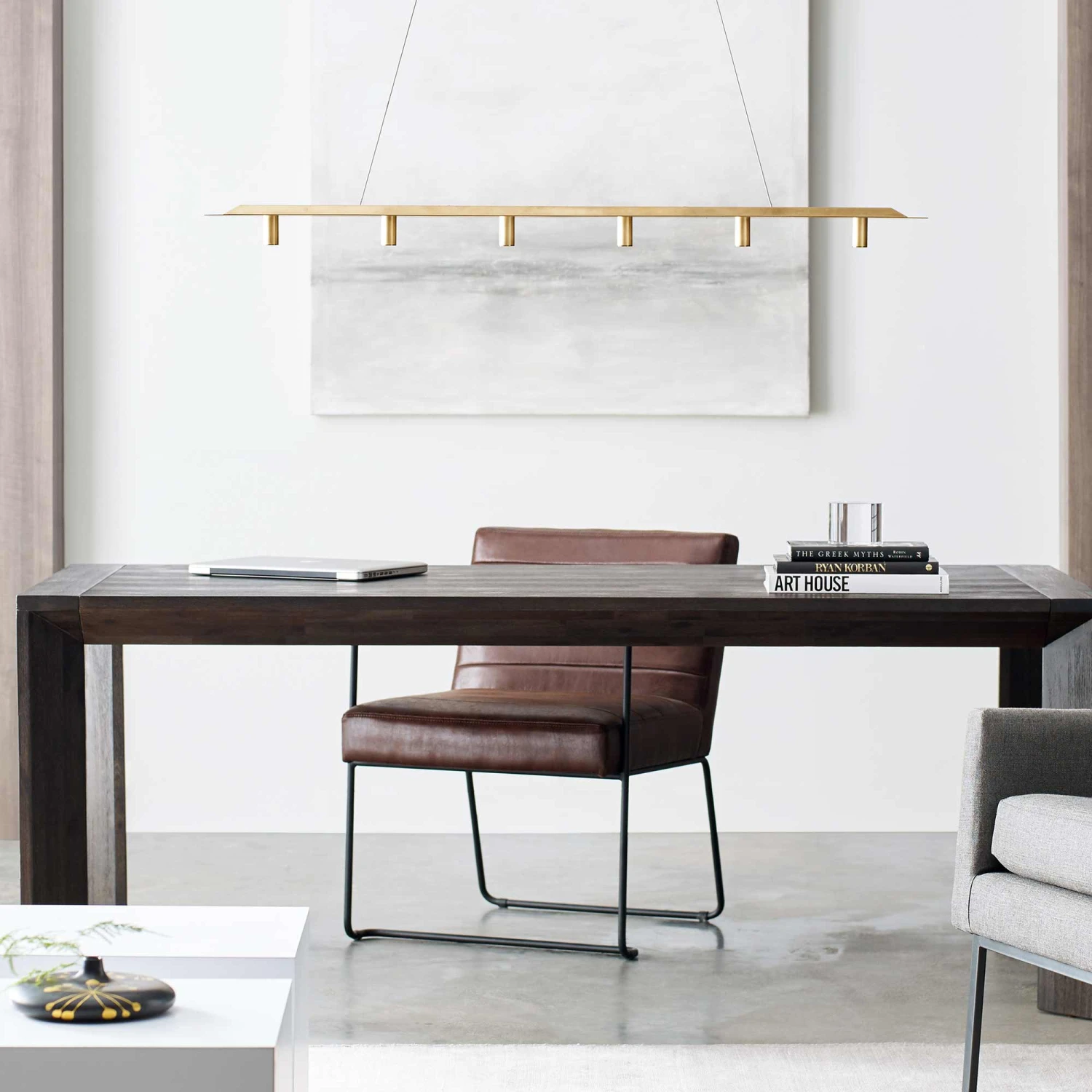 Light up a linear space with the slim, sleek design of the Ponte LED Linear Pendant Light from Visual Comfort Modern. Architectural inspirations pair with energy efficient LED lighting, offering warm illumination over a dining table or even in a professional conference room. Minimalism in design, this pendant adds six light modules for even lighting in your space.