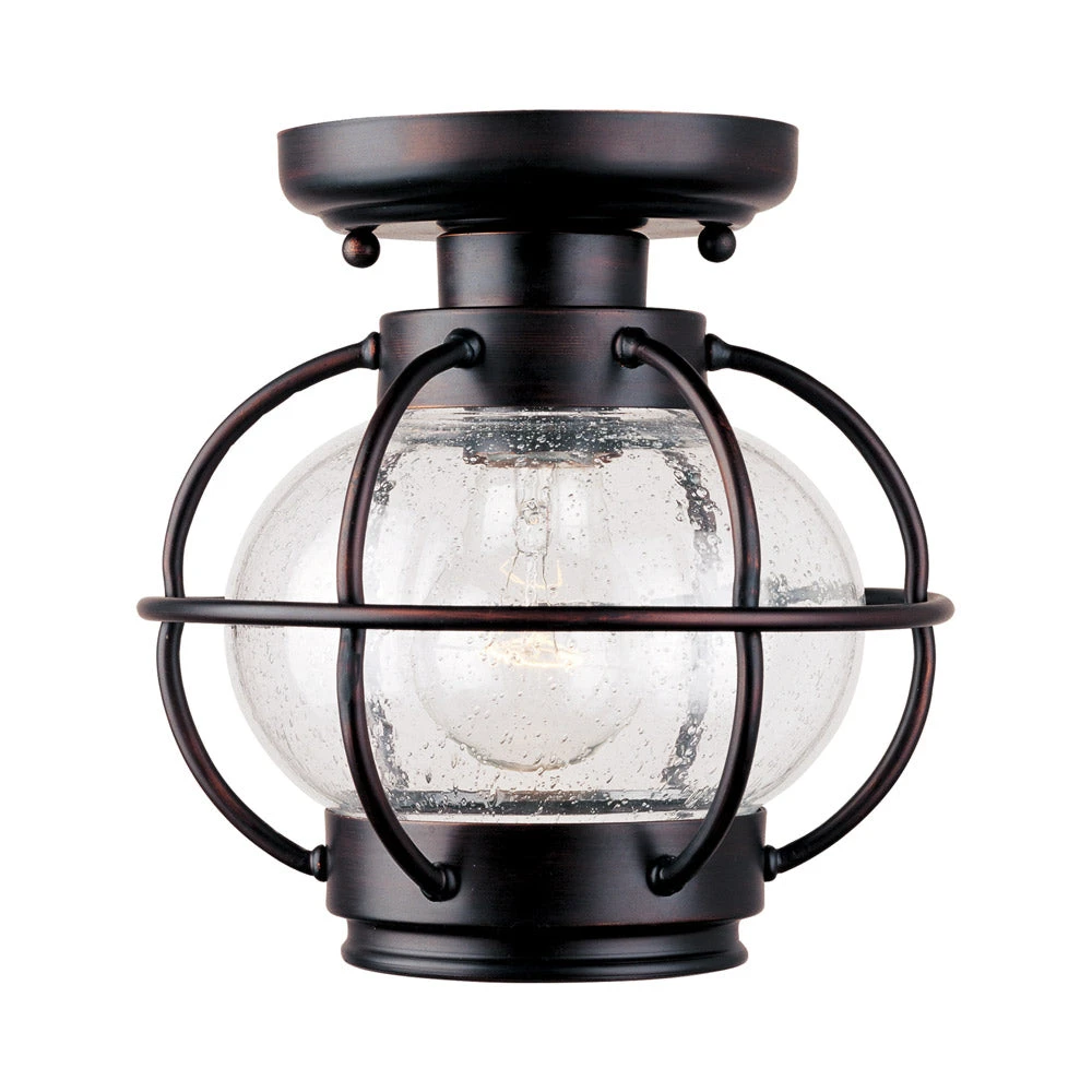 Low-slung and luminous, the Portsmouth Outdoor Flush Mount Ceiling Light from Maxim Lighting evokes the elegance of lanterns that once lit coastal walkways and hidden courtyards. The glow through its delicately seeded glass is warm, inviting, and faintly nostalgic, making it perfect for moonlit gatherings or twilight arrivals. It’s a gentle beacon for refined outdoor living.