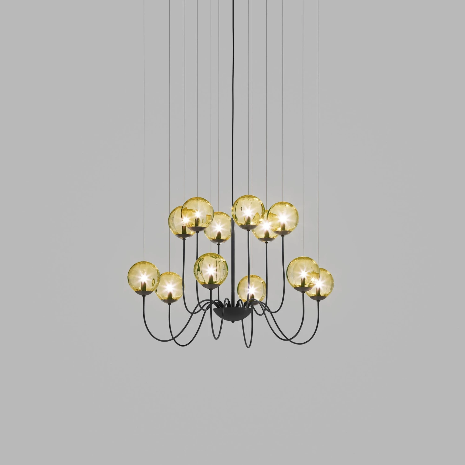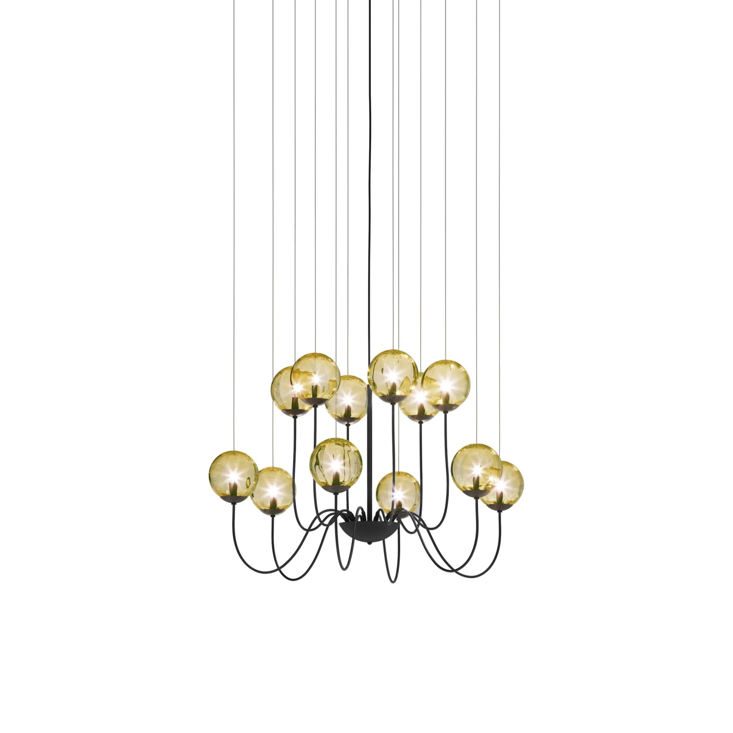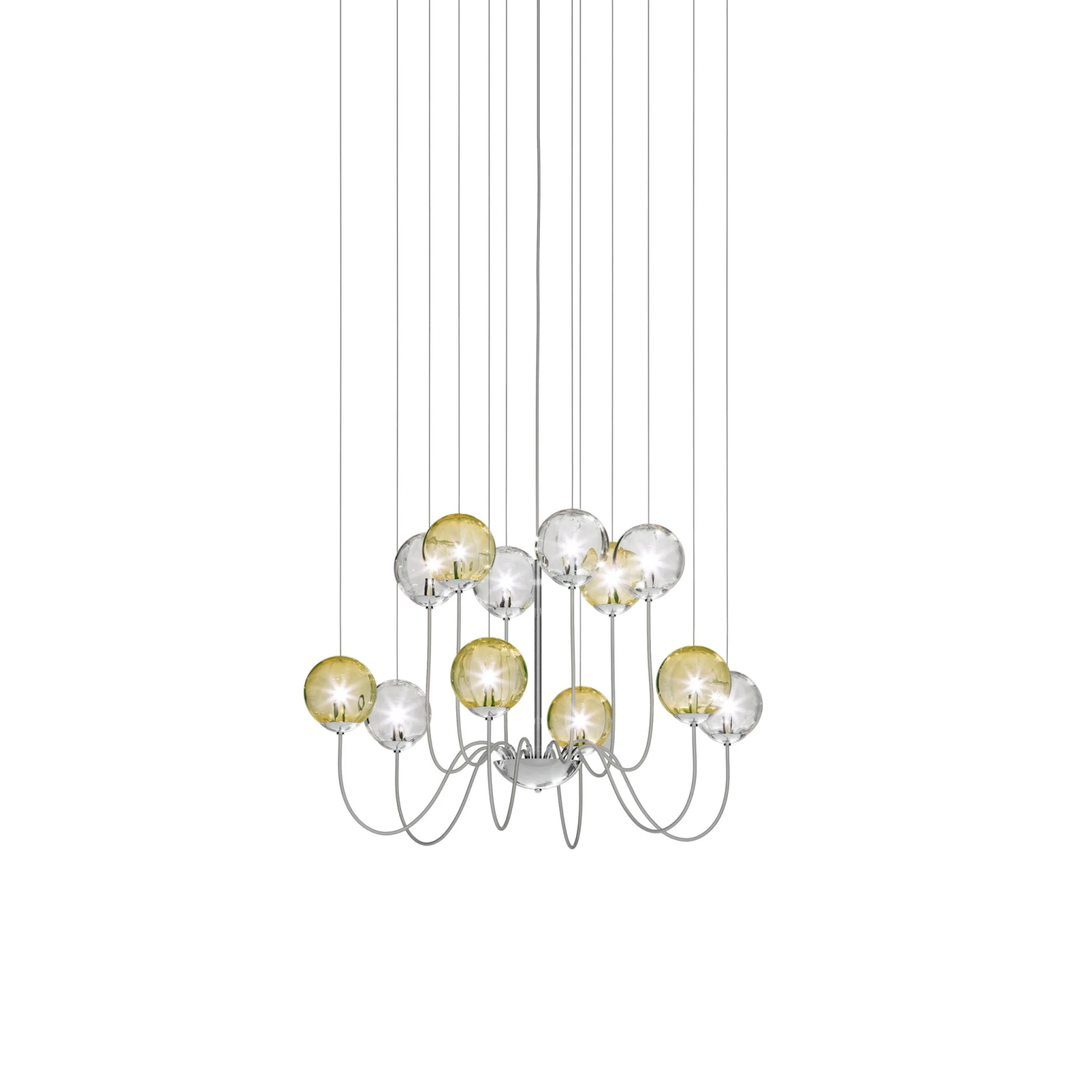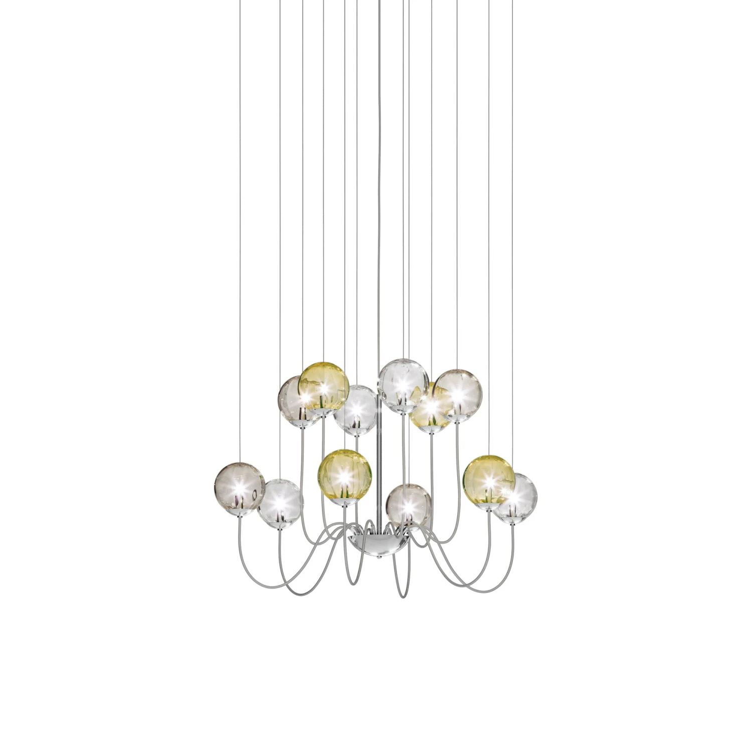 Find the balance between decadence and simplicity with the Puppet Chandelier from Vistosi, perfecting the art of transforming lighting into gallery-style artistry. The sheer delicacy of glass spheres become instrumental in radiating soft light and delivering a captivating aesthetic. Subtle metal holders and suspension cords embellish the contemporary feel of this stylish fixture.