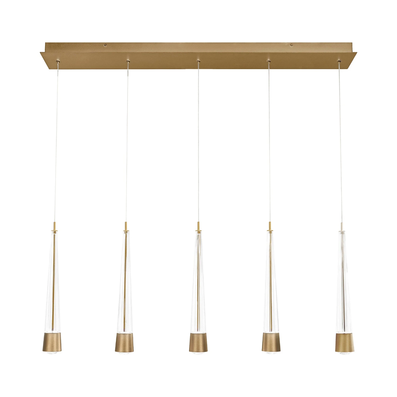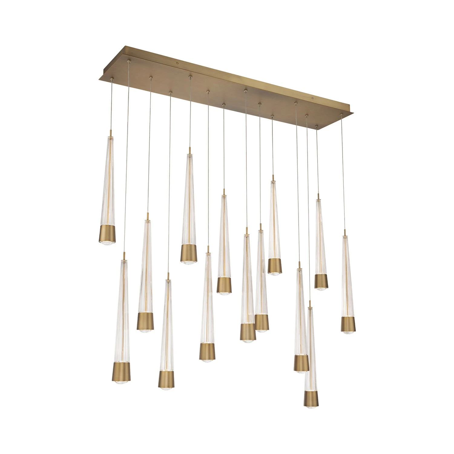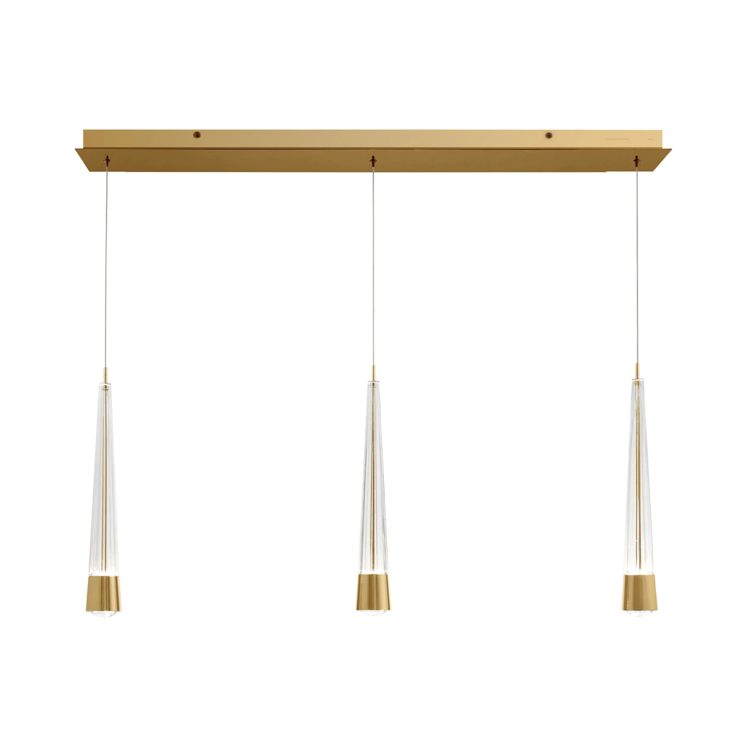 Introduce a mix of geometry and decadence with the Quill LED Linear Multi Pendant Light from dweLED. Aluminum hardware and glass bodies with a V-cut diffuser offers a minimalist approach to elegant style. This multi-light pendant features adjustable powered aircraft cables, creating a minimalist look.