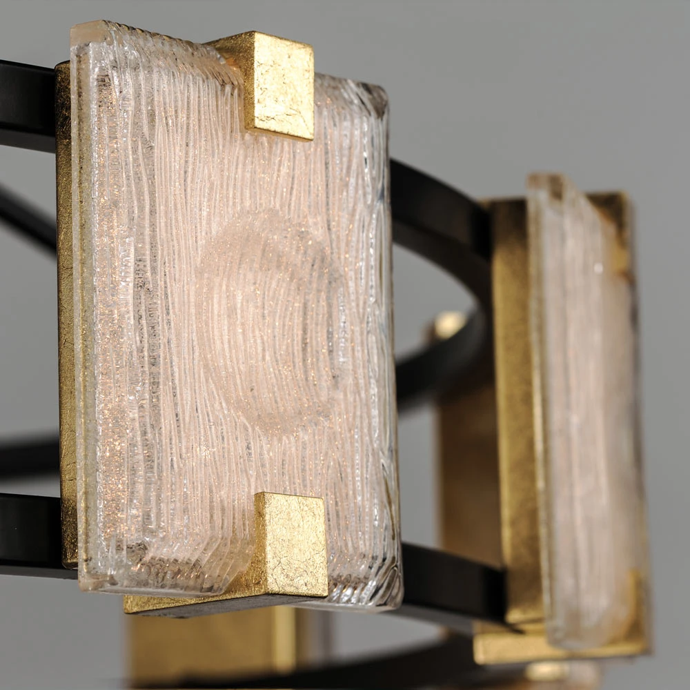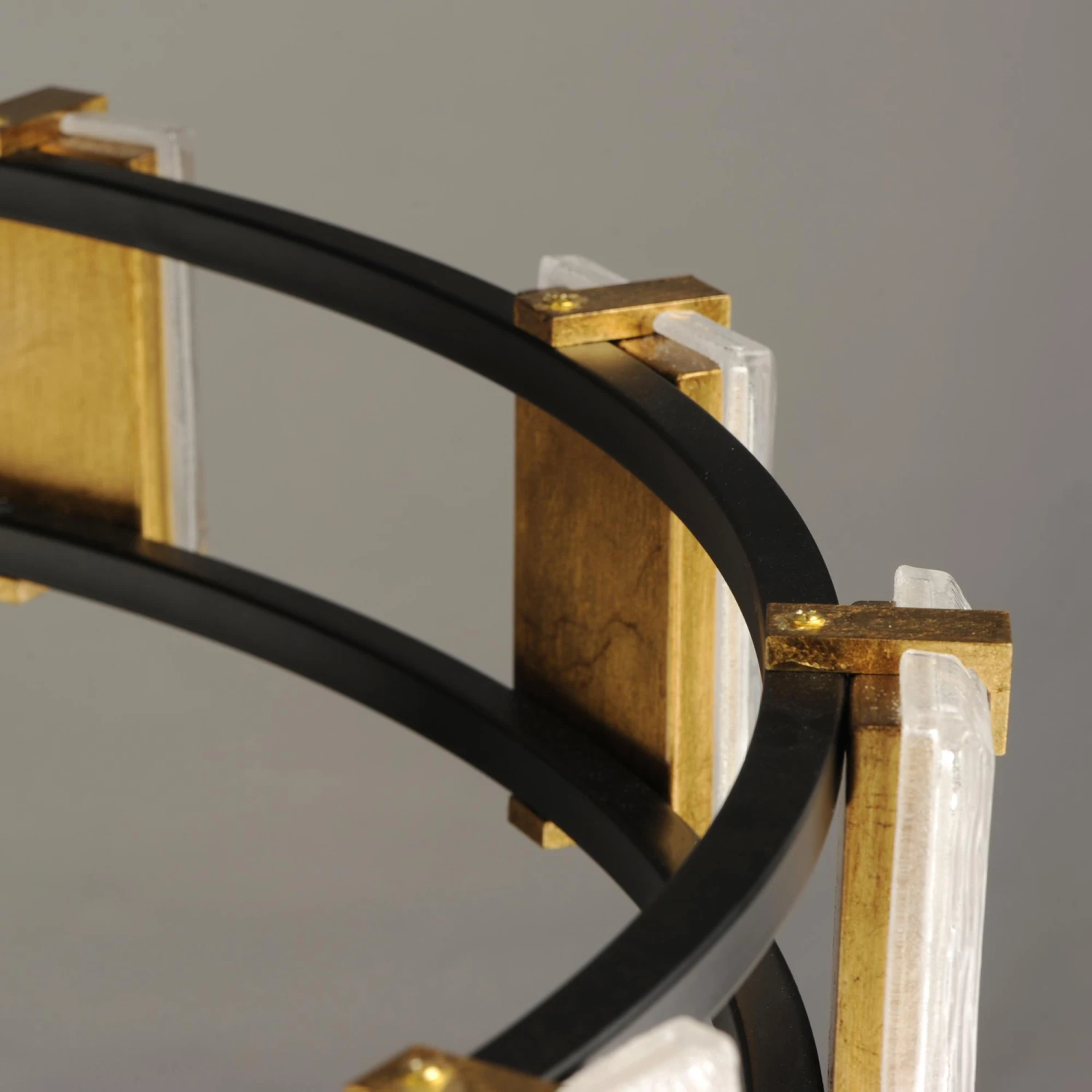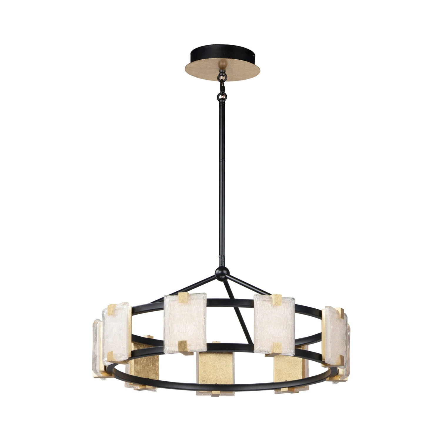 Blending rustic and organic motifs, the Radiant LED Chandelier from Maxim Lighting offers a standout design statement with gallery influence. Bold black metal framing with gold leaf accents begins a gorgeous pairing of finishes in a circular silhouette. Precision-cut pieces of Piastra style glass capture and reflect rays of energy-efficient illumination, adding romantic impact.
