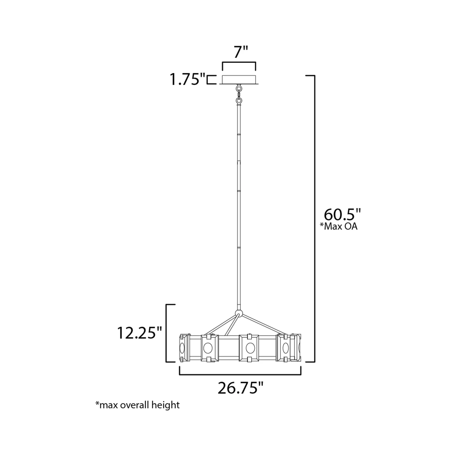 - Fixture Dimensions: 26.75″D X 12.25″H