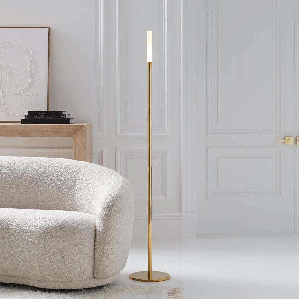 Reductionist design standards manage to repurpose a vintage feel in a lamp with a low impact build meeting high expectations. The Rousseau LED Floor Lamp from Visual Comfort Signature features a condensed configuration of metal framing with a slender etched crystal shade. Energy-efficient and offering touch-dimming features, this lamp makes itself at home in living rooms, dens, and bedrooms.