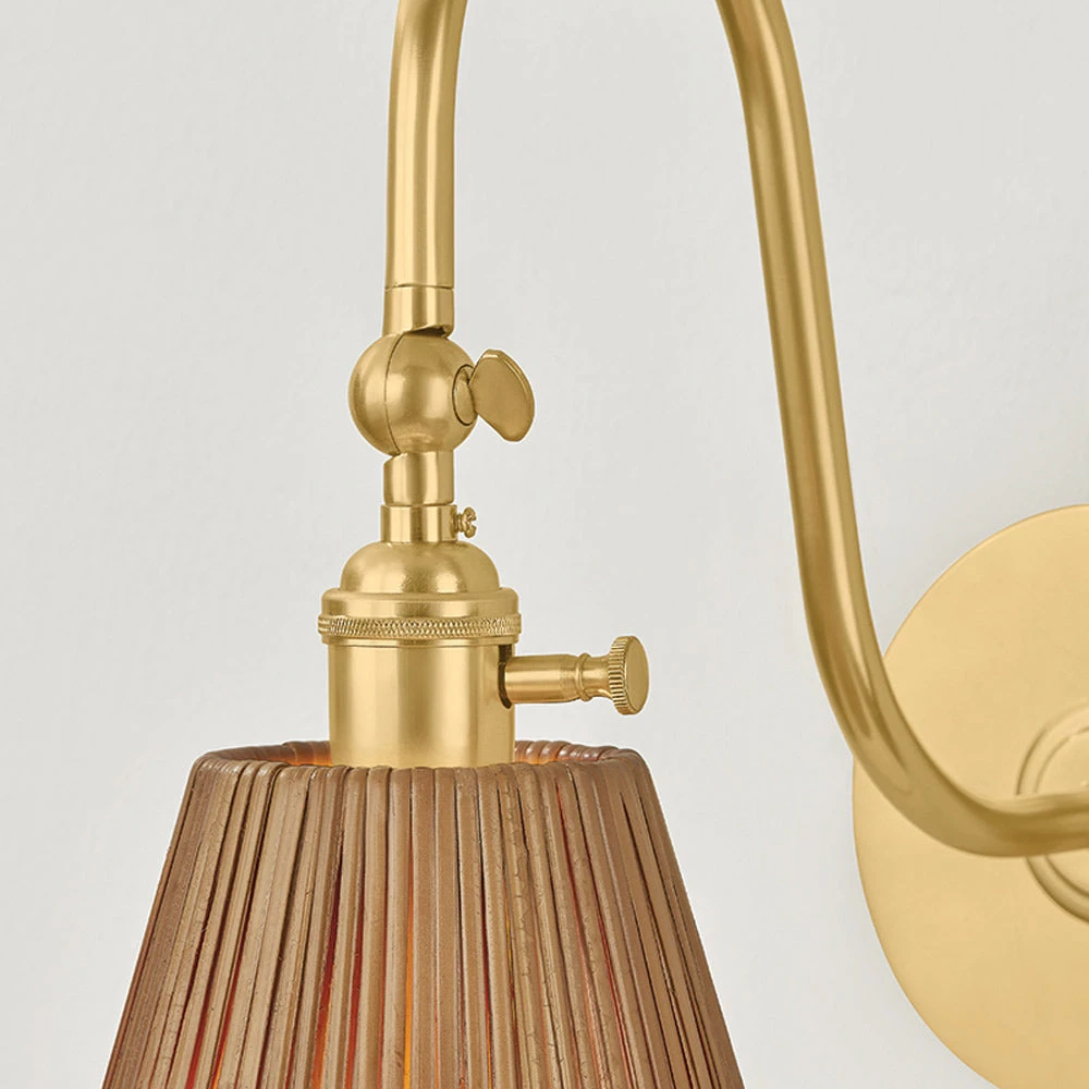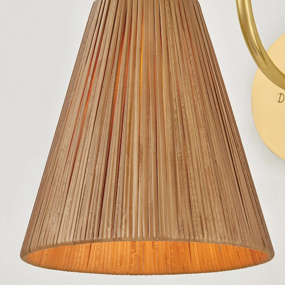 A fresh take on coastal lighting, the Ruthin Wall Light from Hudson Valley Lighting feels both grounded and graceful. The mix of natural rattan and sleek metal creates depth, while the curved silhouette softens the look. Whether solo or in a pair, it adds an elevated, easygoing glow.