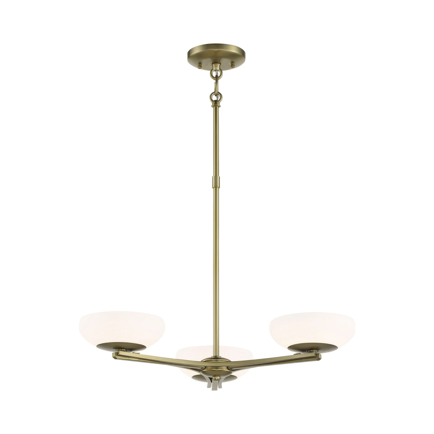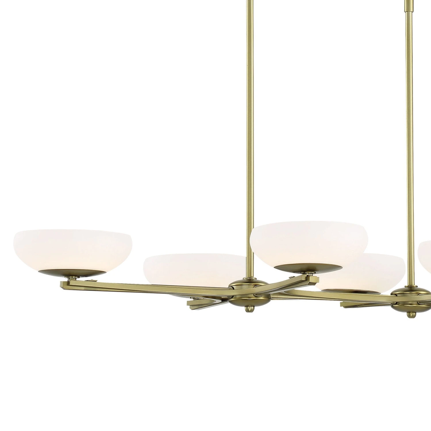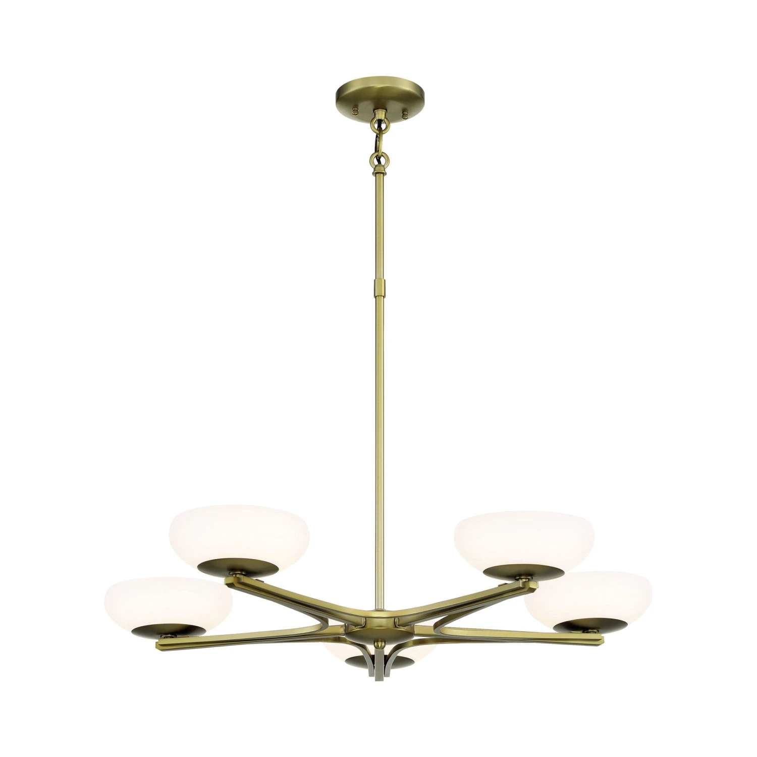 Smooth etched glass bowls create a soft and inviting glow from the Scale LED Chandelier from George Kovacs in warm soft brass finish.