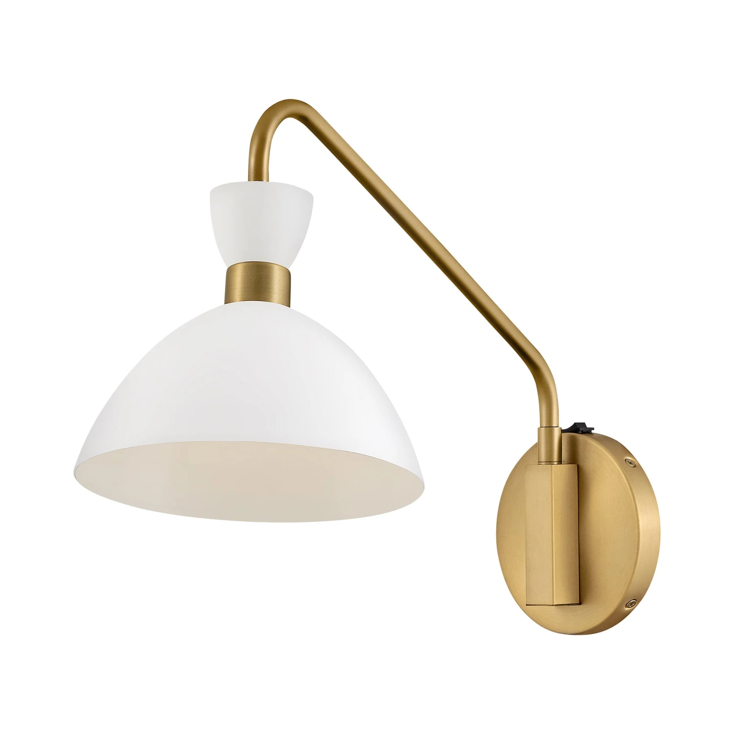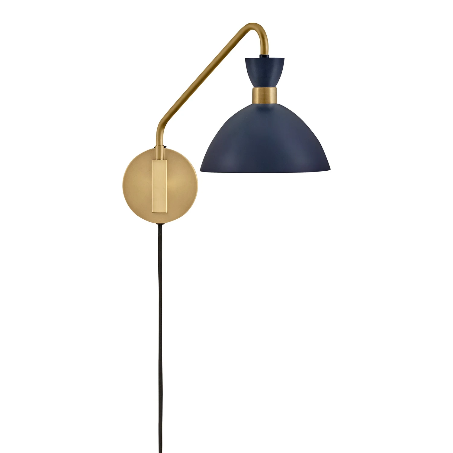 Dress up your bedside or favorite sitting area with the tuxedo-inspired style of the Simon Plug-In Wall Light from LARK. A graceful dome and slender collar punctuate the shade while an angular arm and round wall plate add contrast and dimension.