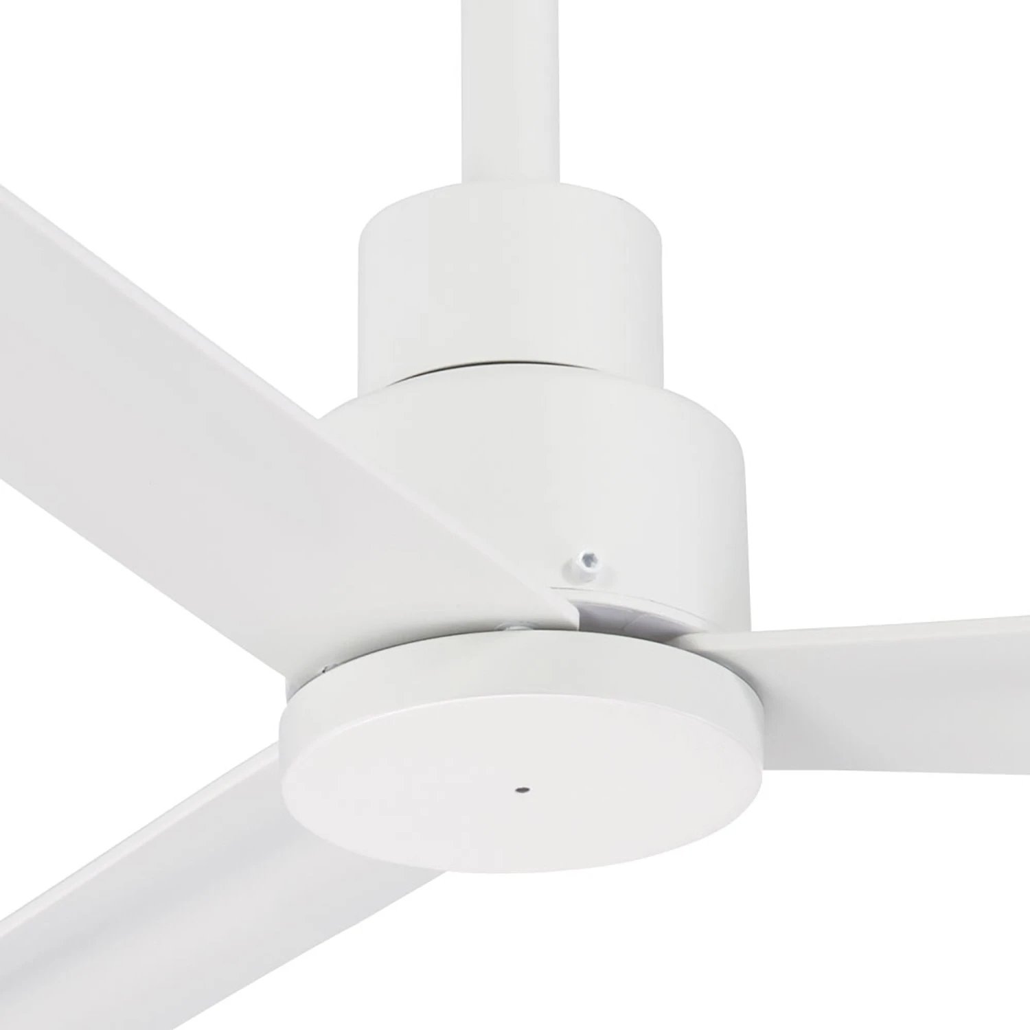 Simplicity of style plays out in a modern look with industrial influence, as the Simple Outdoor Ceiling Fan from Minka Aire offers a seamless continuity for a casual exterior space. This metal fan embraces a low-profile design with three aerodynamic blades that deliver soothing circulation through a full function hand-held remote control unit.