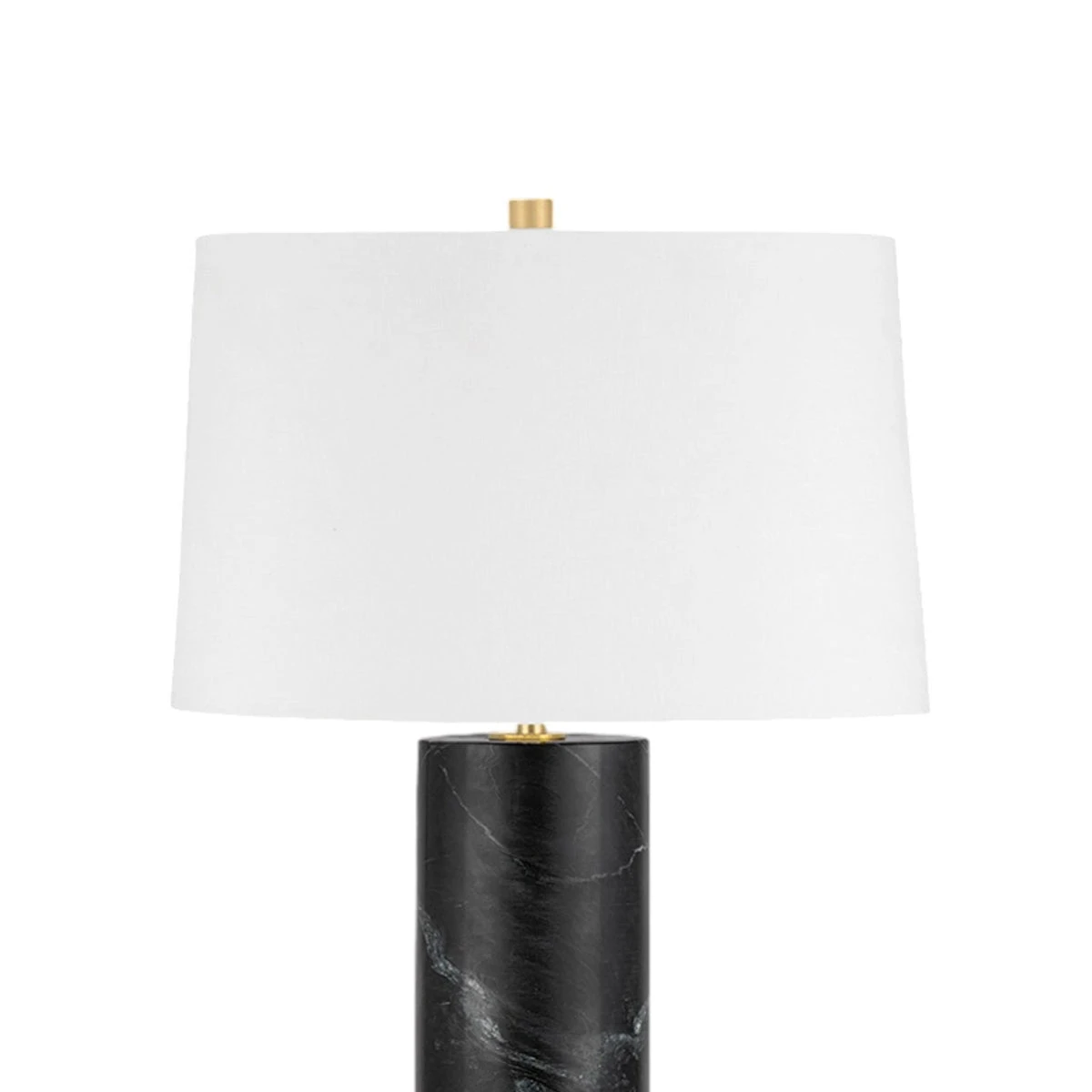 The presence of a column base fashioned of dramatic black marble begins a bold and inspired look perfect for living rooms and bedrooms. The Sprague Table Lamp from Hudson Valley Lighting is at once minimalist and provocative, clinging to a scaled down vibe yet dressed up with sophistication. Its fabric shade beautifully tops this elegant lamp.