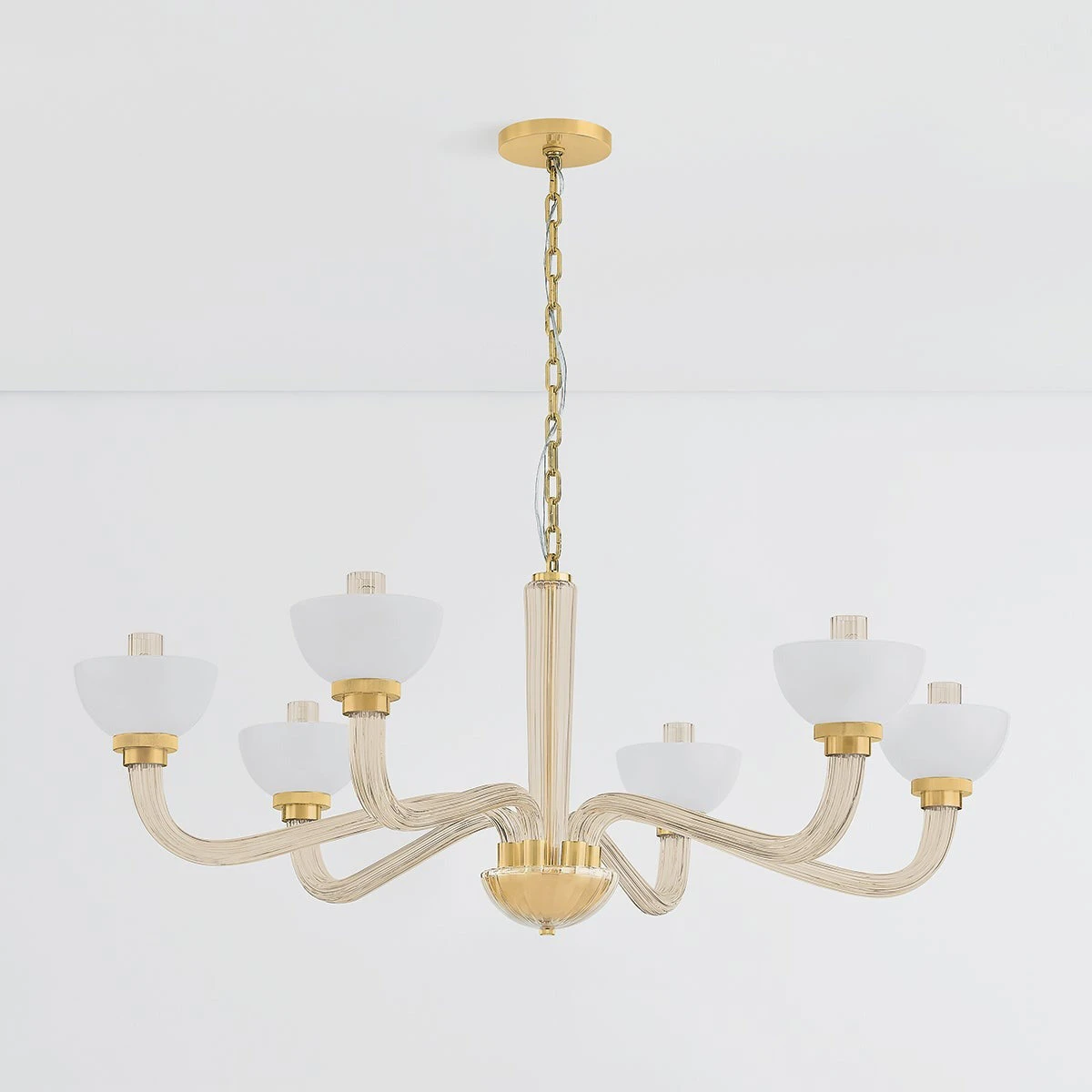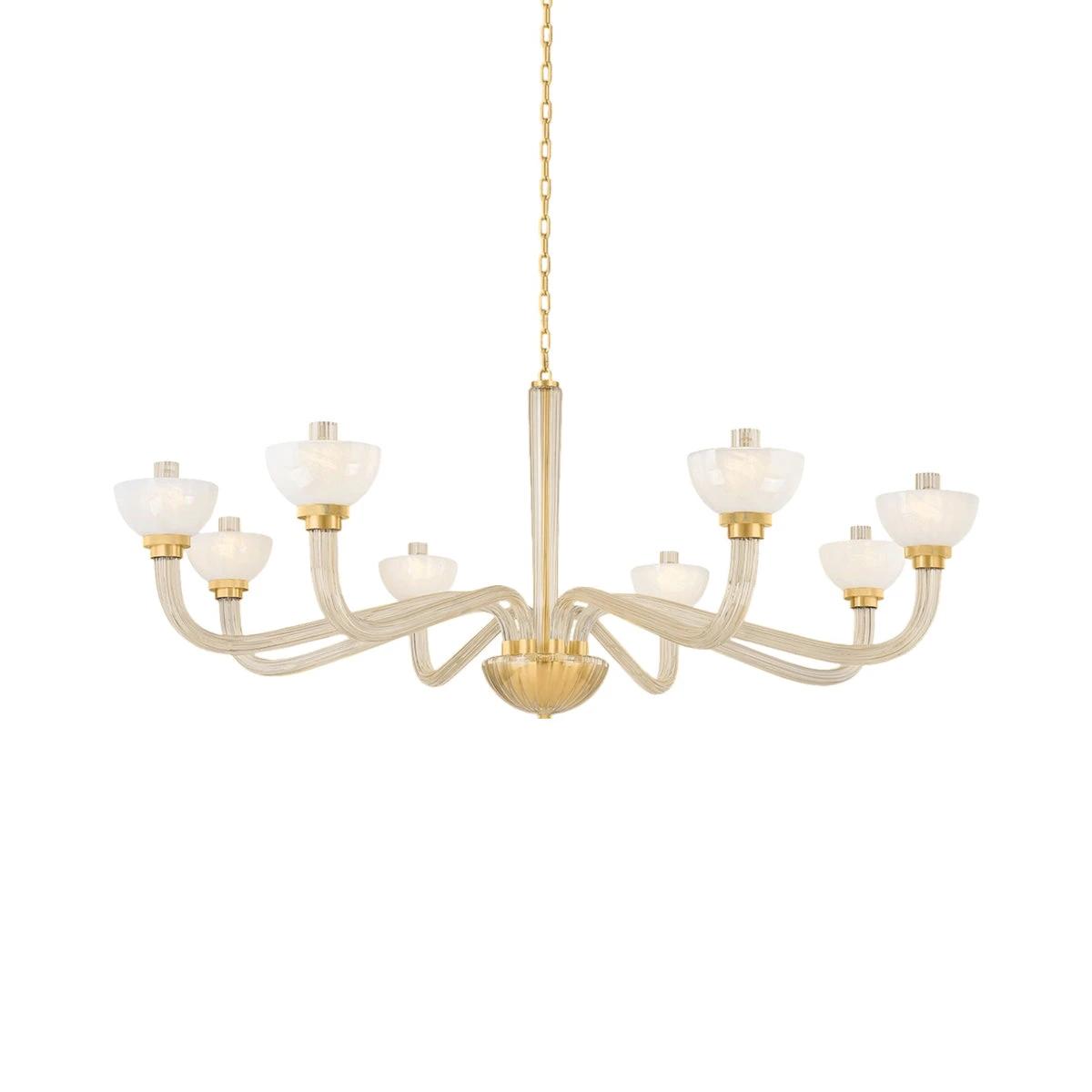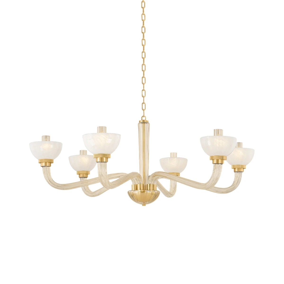 Vintage fare takes a curious turn with chic results as the St. Lawrence Chandelier from Hudson Valley Lighting delivers something in between glam and minimalism. Layered glass and endearing metal collaborate in a silhouette with gently curved thick arms and bowl shaped seedy glass shades. Enjoy a gallery influence adding uplifting beauty to a fixture that highlights a dining ensemble or foyer.