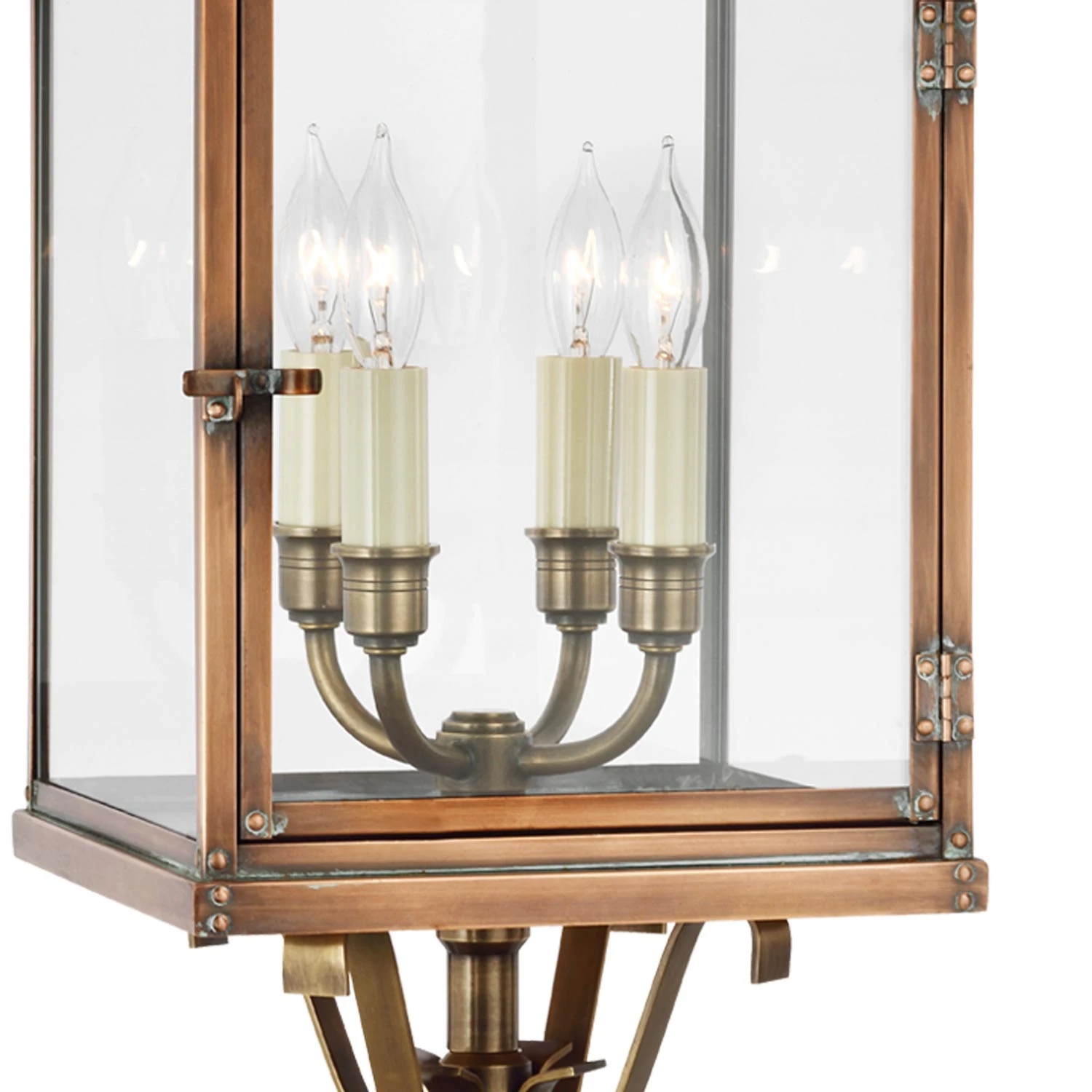 The inspiring romance of old-world village fare adds engaging artistry to an exterior light source that changes the aesthetics of a walkway or landscaped space. The Suffork Outdoor Post Light from Visual Comfort Signature presents a decadence in classic antiqued style and an iconic lantern silhouette with tempting upgrades. Metal and clear glass form a decadent venue shielding character-rich candelabra style lighting ready to transform any outdoor space.