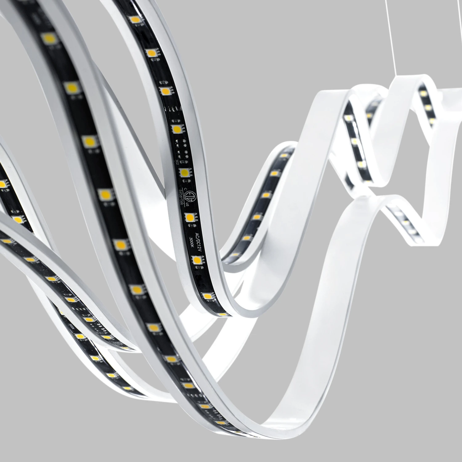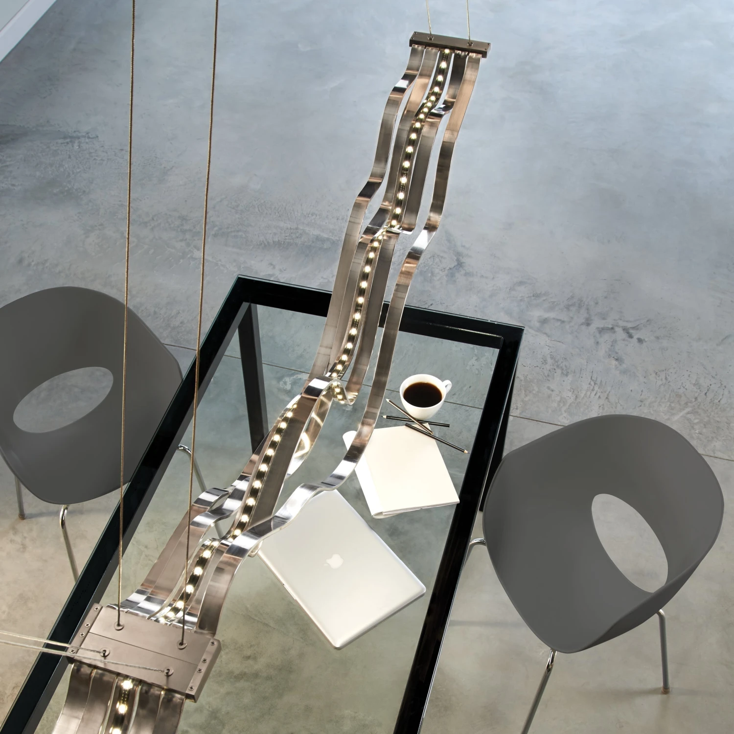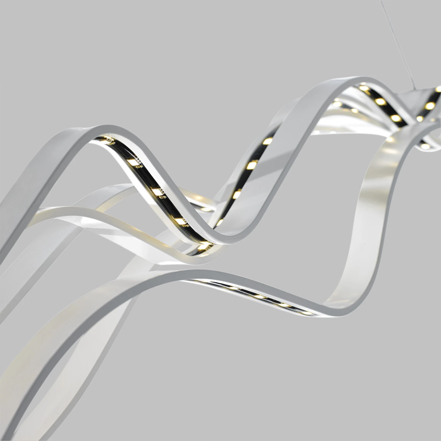 The Surge LED Linear Suspension Light from Visual Comfort Modern appears to float effortlessly with its smooth wavy lines. The graceful force of ocean waves is captured when gently undulating bands of downward and upward firing LED strips join to form a striking fixture capable of creating layers of illumination. Fixtures can be linked together end-to-end to create longer, continuous runs using the optional Mechanical Connector. The Surge fixture spans 54” in length making it ideal for conference room lighting, foyer lighting and a host of commercial and residential lighting applications. Your choice of fully dimmable LED lamping ships with the Surge saving you both time and money. Downward and upward facing LED strips provides downlight and uplight to create layers of illumination. To empower lighting designers to create unique applications, fixtures can be linked together end-to-end to create longer, continuous runs using optional Mechanical Connector.