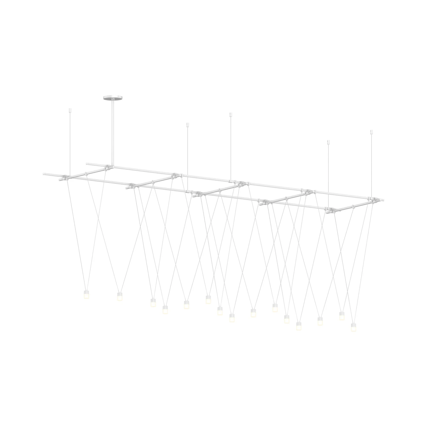 Delicate linear silhouetting is dotted with petite luminaires to create the light, airy ambiance of the Suspenders® Gridscape V-Line Etched Cylinder LED Chandelier from Sonneman Lighting. It’s a truly masterful centerpiece fixture, offering power bars that creates a graphic gridscape that can be constructed in a variety of sizes and scales to best suit your space. It’s the perfect way to make an impact over a modern dining table or kitchen island.