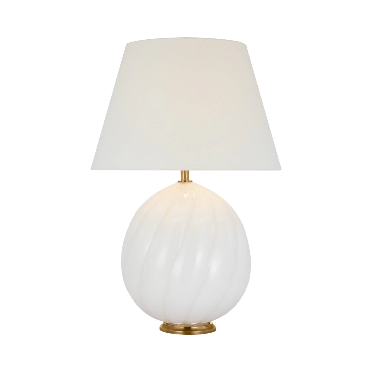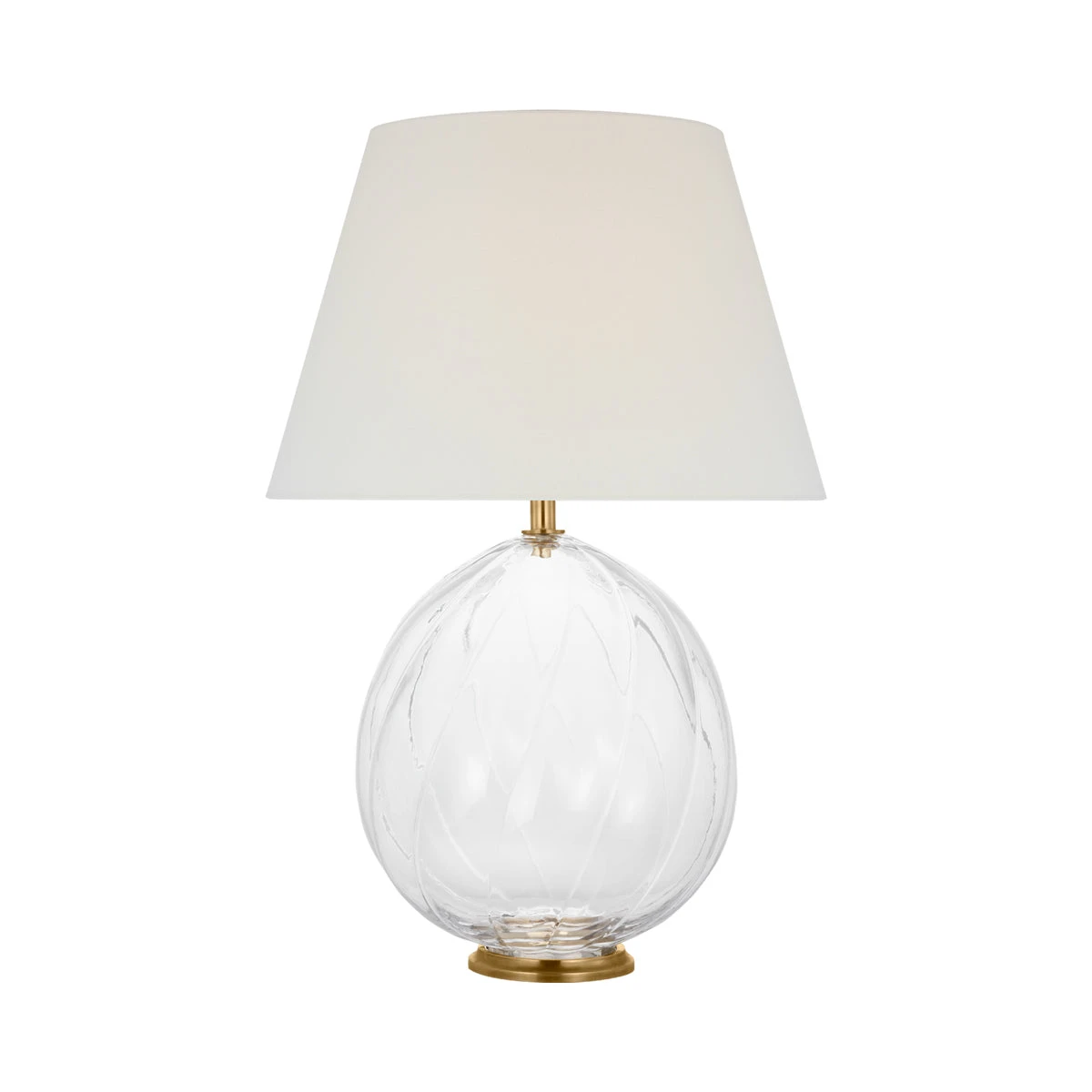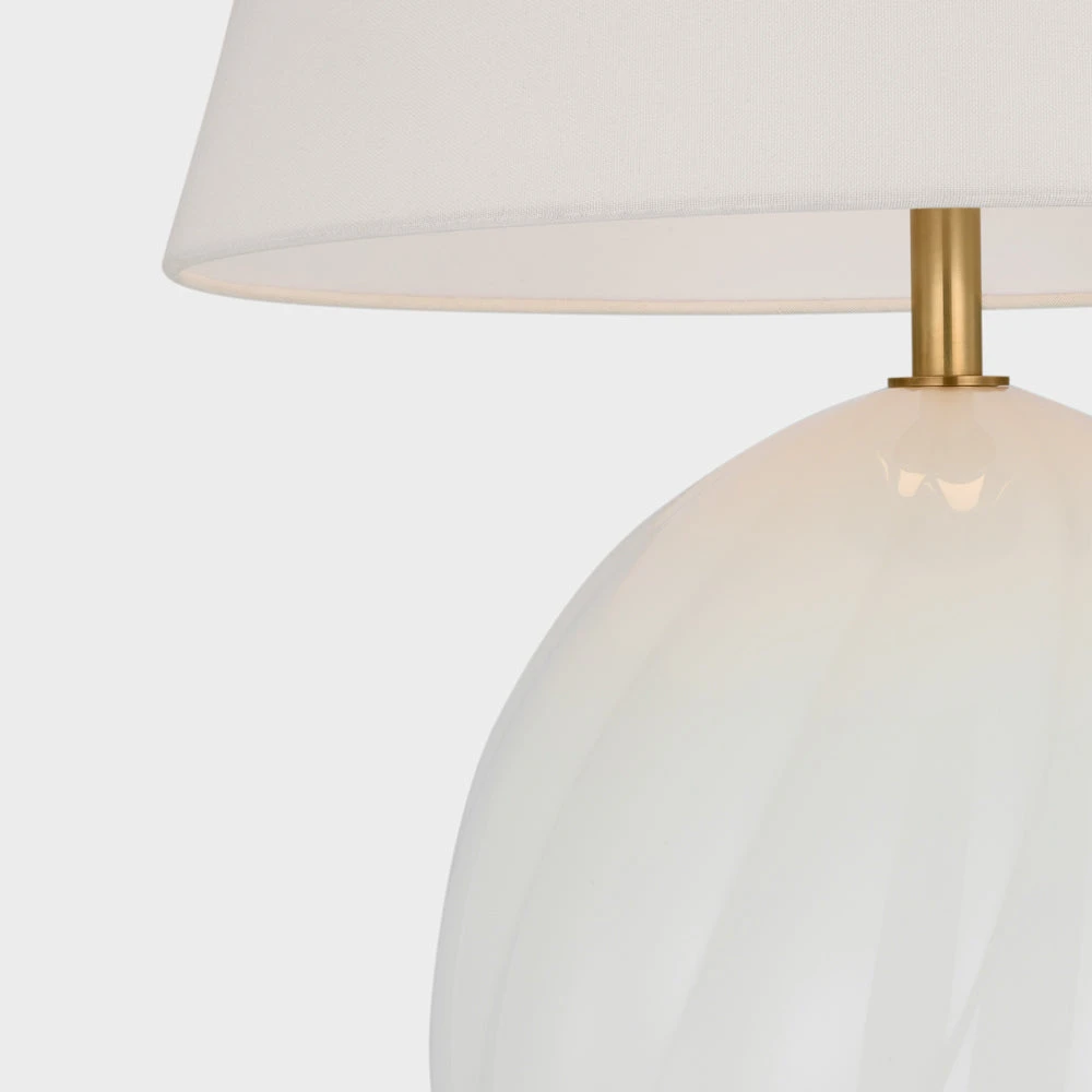 Iconic glass construction revisits a retro era as the Talia LED Rechargeable Table Lamp from Visual Comfort Signature is both versatile and elegant. Its shapely silhouette and metal accents fit together like a hand in a glove, with a tapered shade offering perfect proportionality.
