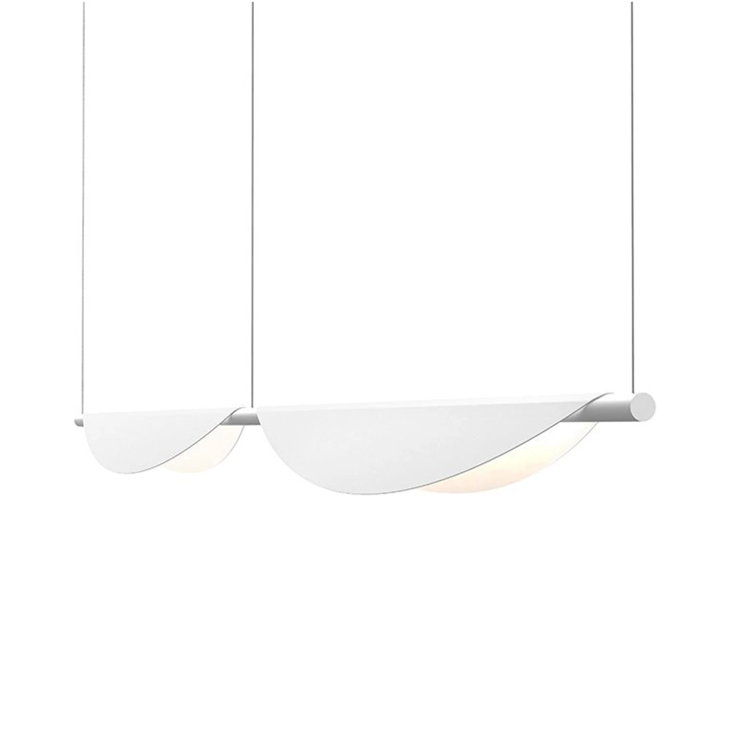 The Tela™ LED Double Pendant Light from Sonneman Lighting creates a version of utility in lighting, casual and yet infused with intrigue. Its suspended bar design welcomes rounded diffusers draped in doubles of varying sizes in a purposefully unbalanced position. You’ll be drawn to the obscure and yet easy style of an energy-efficient light fixture.