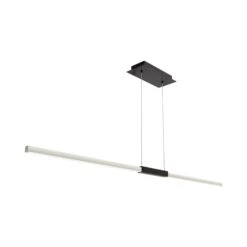 The Tie Stix Center Feed Antique Bronze/Satin Nickel LED Linear Pendant Light from PureEdge Lighting embellishes a minimalist look with contrasting finishes and adds architectural minimalism as a key ingredient in energy-efficient interior lighting. A long, slender frame lined with a white diffuser spreads glowing light evenly with optical performance, adding dimming options with the separate purchase of suitable components.