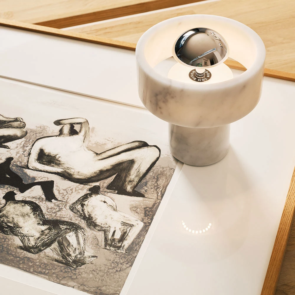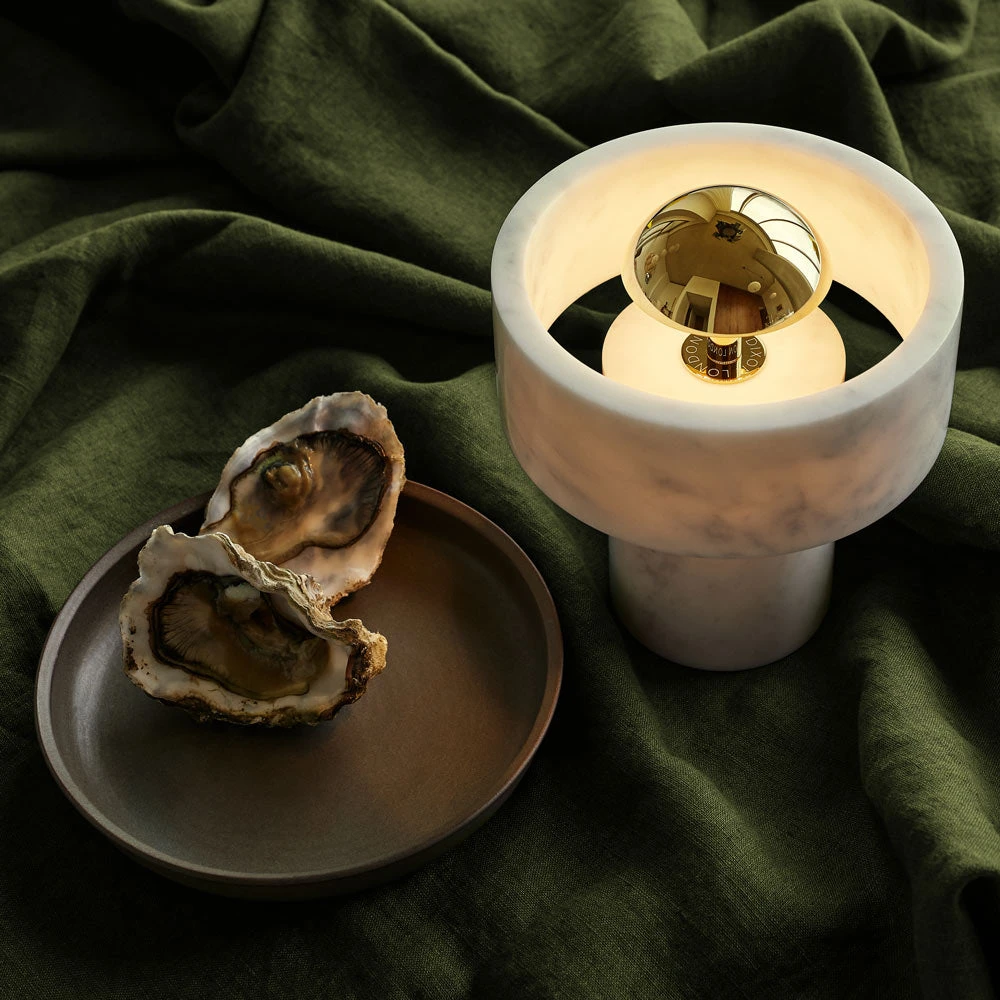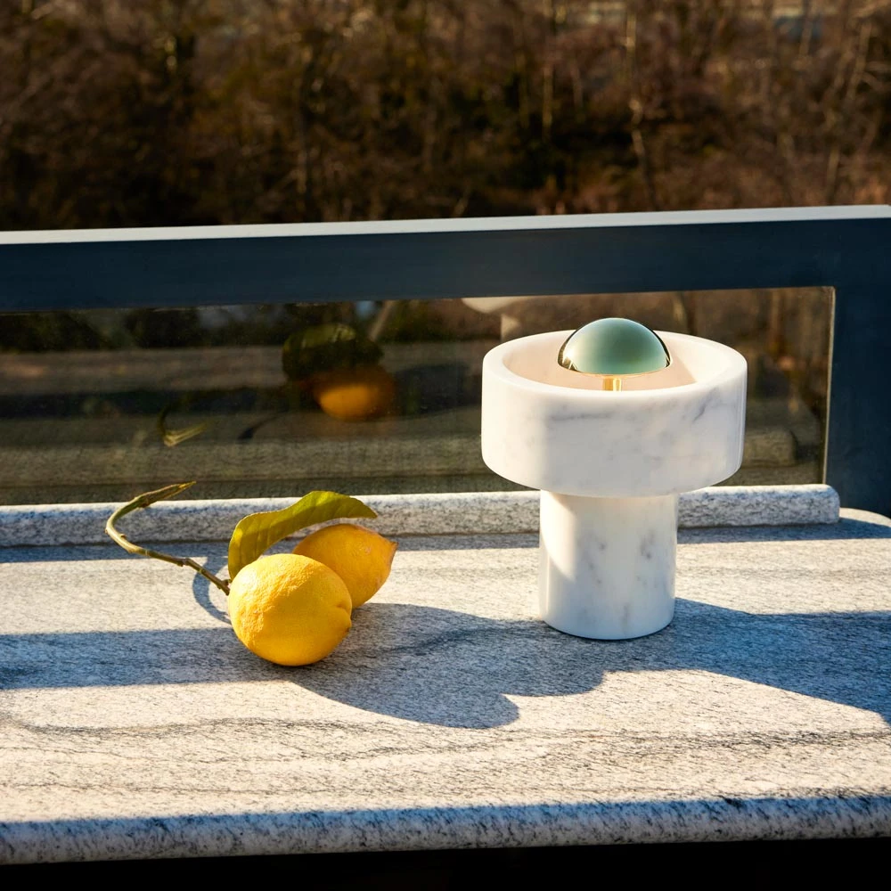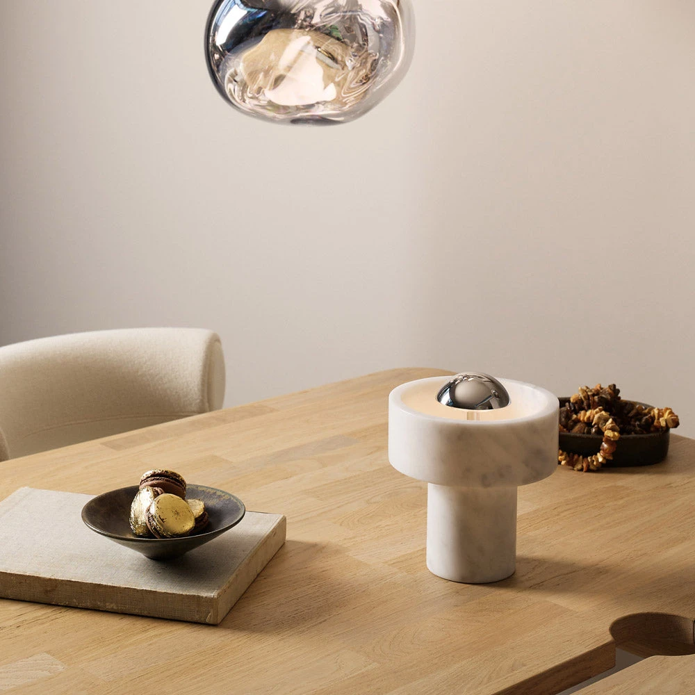 Begin with an alluring organic vibe and end with the contemporary look of basic shaping. Resulting is the Stone LED Portable Table Lamp from Tom Dixon, a superb choice for a mixed motif space. Marble construction welcomes a centered metal cap delivering energy-efficient three-way lighting.