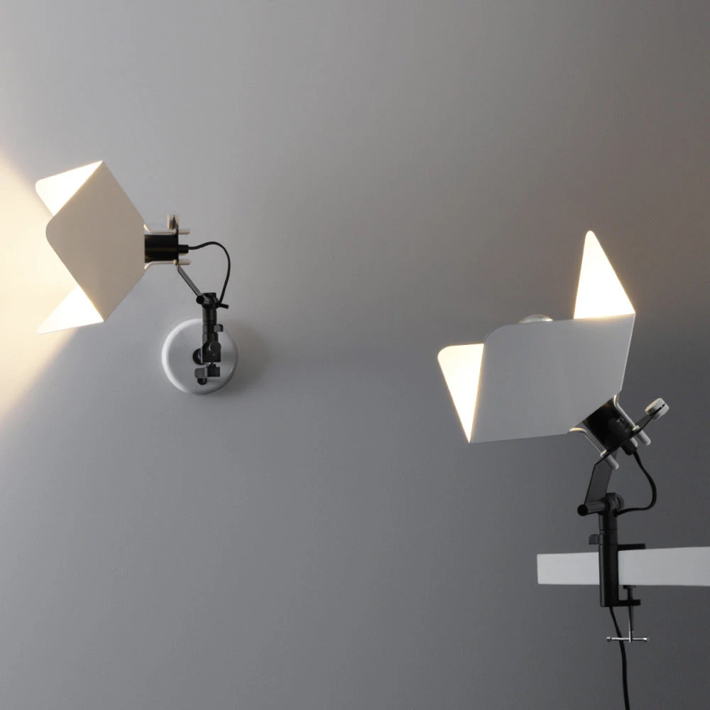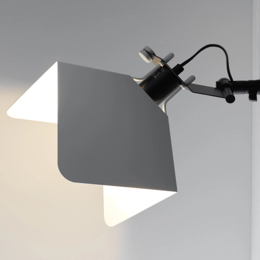 A pair of mounting and usage options magnifies usability as the Triedro Table Lamp/Wall Light from Stilnovo adds a cool industrial motif to a casual space. Metal framing with an origami-inspired silhouette creates a hybrid artisan and architectural aesthetic, with a brilliant shite finish blending with bold black elements. As a desk or table lamp or a wall-mounted fixture, it wakes up fresh energy.