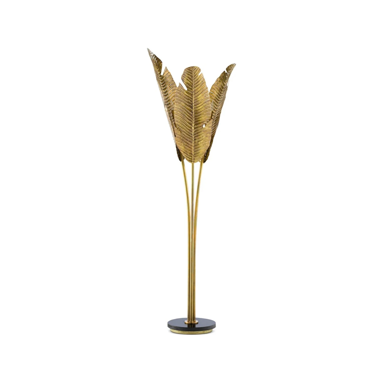 Laden with intricate detail, the Tropical Floor Lamp from Currey and Company repurposes island-inspired botanicals into a glam iteration of indoor lighting. You’ll fall in love with the warm vintage brass finish coating authentically sculpted leaves attached to gracefully curved stem elements.