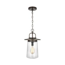 A nautical style motif offers a charming bonus to the Tybee Outdoor Pendant Light from Generation Lighting. Drawing from a past era, this pendant’s glass and metal fixture is embellished with authentic maritime accents with village influence, turning a minimalist look into a chic themed light.