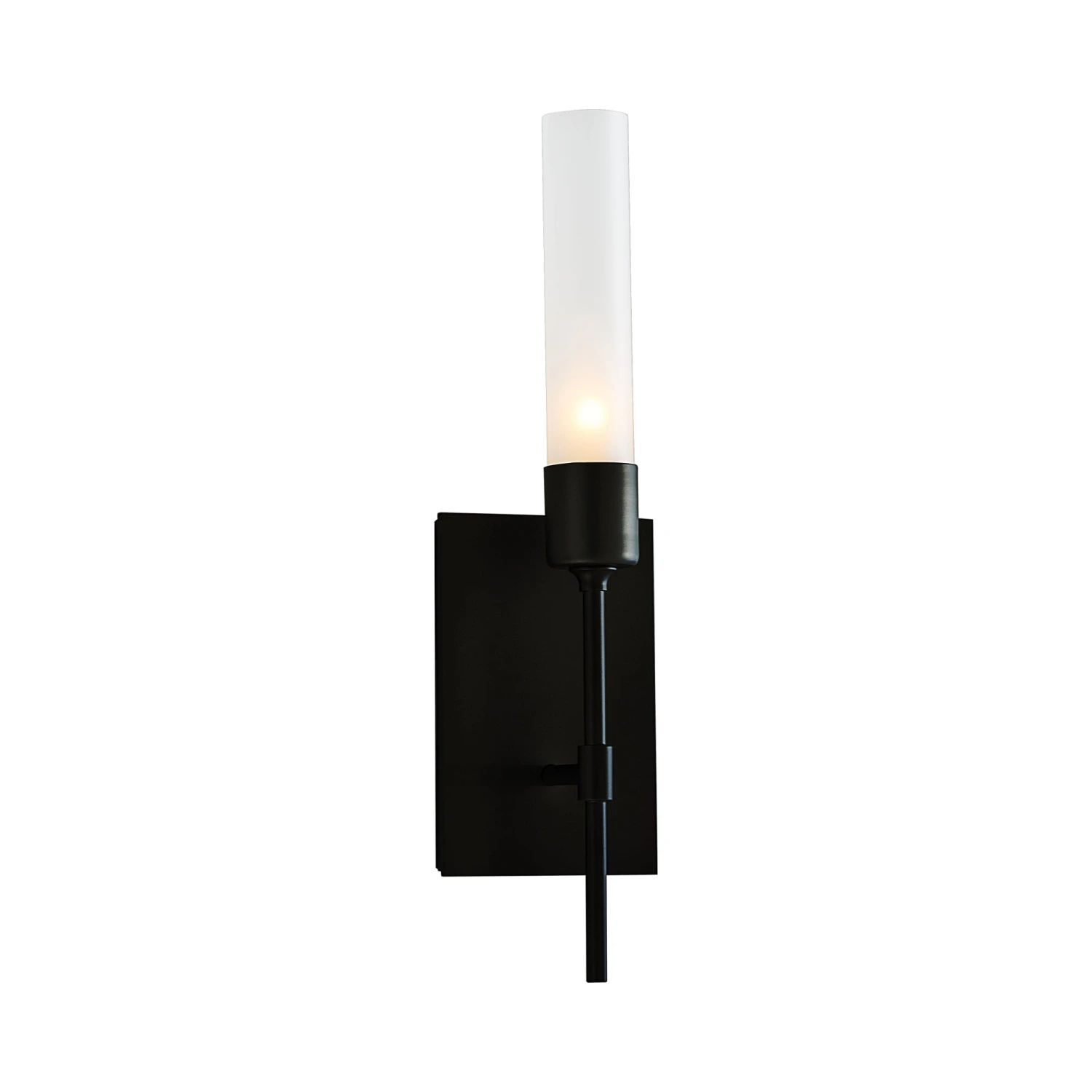Simplicity and craftsmanship define the Vela Wall Light from Hubbardton Forge, offering a clean and contemporary design that enhances any space. The sleek glass shade completes the minimalist aesthetic, casting a soft, inviting glow. This elegant sconce brings understated beauty and modern sophistication to your walls, making it a perfect fit for a variety of interiors.