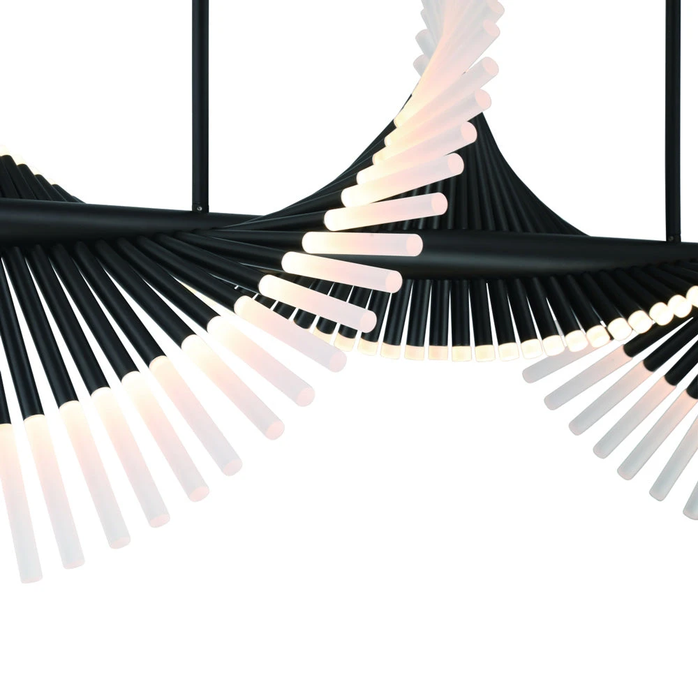 Optical illusory effects create sensational artistry with both contemporary and retro flavor as the Voltik LED Chandelier from Eurofase shapes a decadent look in energy-efficient lighting. With a piano keyboard motif at its core, this Art Deco influenced chandelier offers a double-helix motif blending metal and acrylic in a twisted formation and delivering the touch of drama you’re craving.
