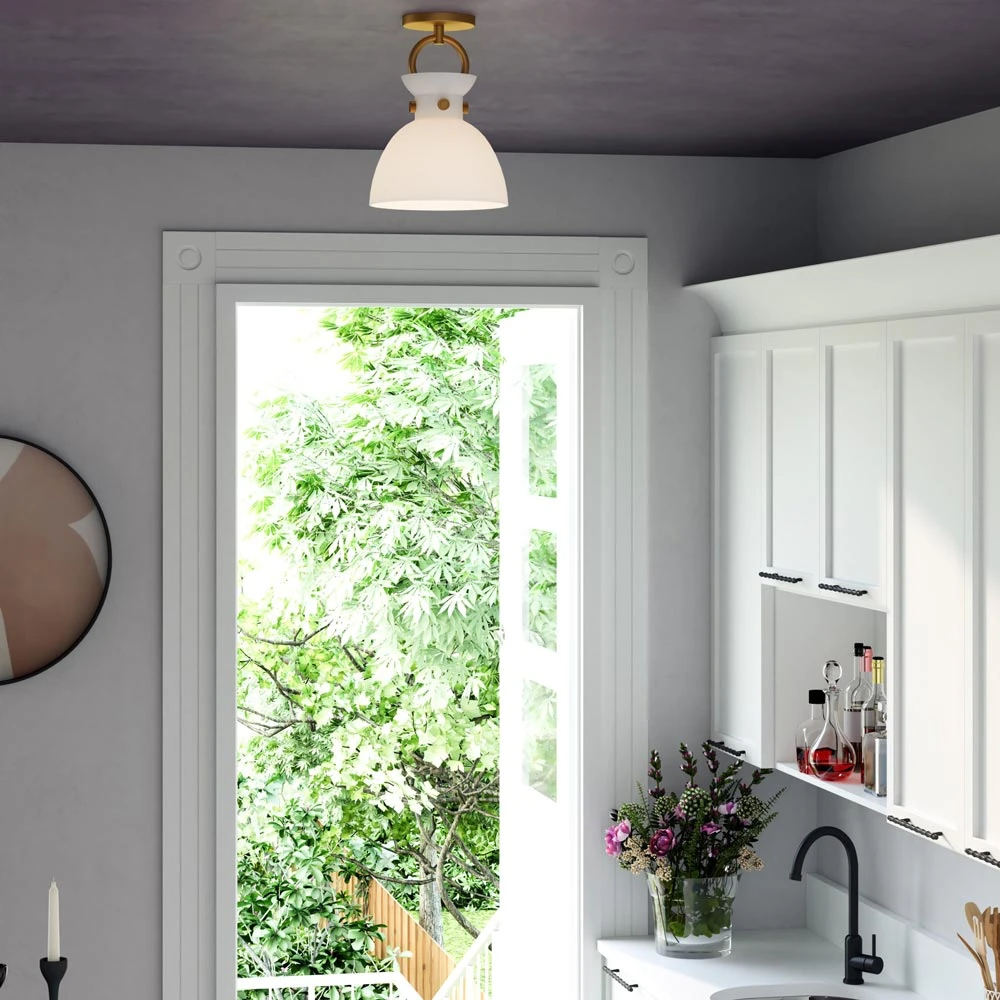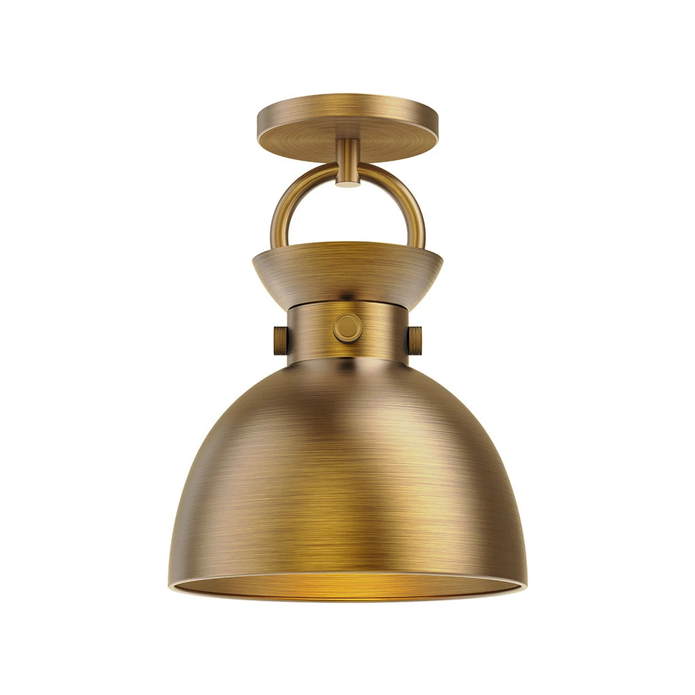 The Waldo Semi Flush Mount Ceiling Light from Alora Mood delivers the classic and timeless farmhouse motif as it hugs ceilings with its lush metal construction and infamous dome shade design. Revert to a vintage look with consistency and versatility, aiming visual impact toward a lushly painted gold interior and noting cleverly ornate accent elements making this fixture stand out.