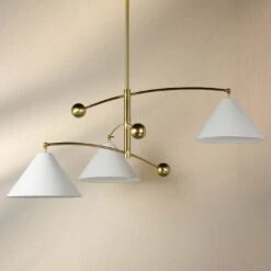Iconic industrial influence embellishes the design creds of glam metal dome shades arranged carefully to provide an abundance of illumination. The Worth Chandelier from Arteriors spreads its traditional motif with unexpected tropical accents in natural rattan wrapping on its slender arms. Pipe-like structuring juxtaposes with the curvaceous shade design, adding an intriguing mix ideal for highlighting a dining ensemble or foyer.