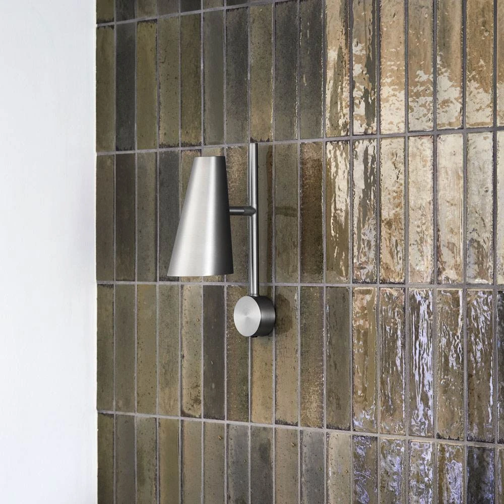 Making a statement of bold style, the Cono Wall Light from WOUD reworks a conventional conical fixture with an angled shade embellishing a parallel design with its chic arm. This fixture adds an industrial-inspired studio vibe while maintaining a soft, silky feel and aesthetic with its matte textured finish. Adjustable light directionality is ideal for reading or highlighting selected decor.