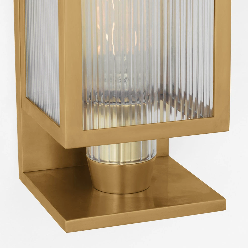 A perfect blend of linear design and Olde World style creates a superb source of radiant light for an exterior patio or deck space. The York Outdoor Wall Light from Visual Comfort Signature reflects a modernized lantern design with modifications added for even more elegance. Clear ribbed glass in metal framing gives off sensual illumination, perfectly suited for evening events or relaxing.
