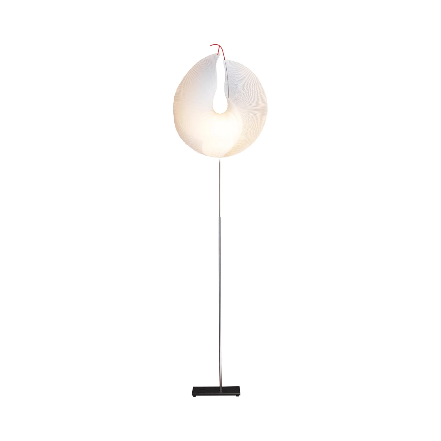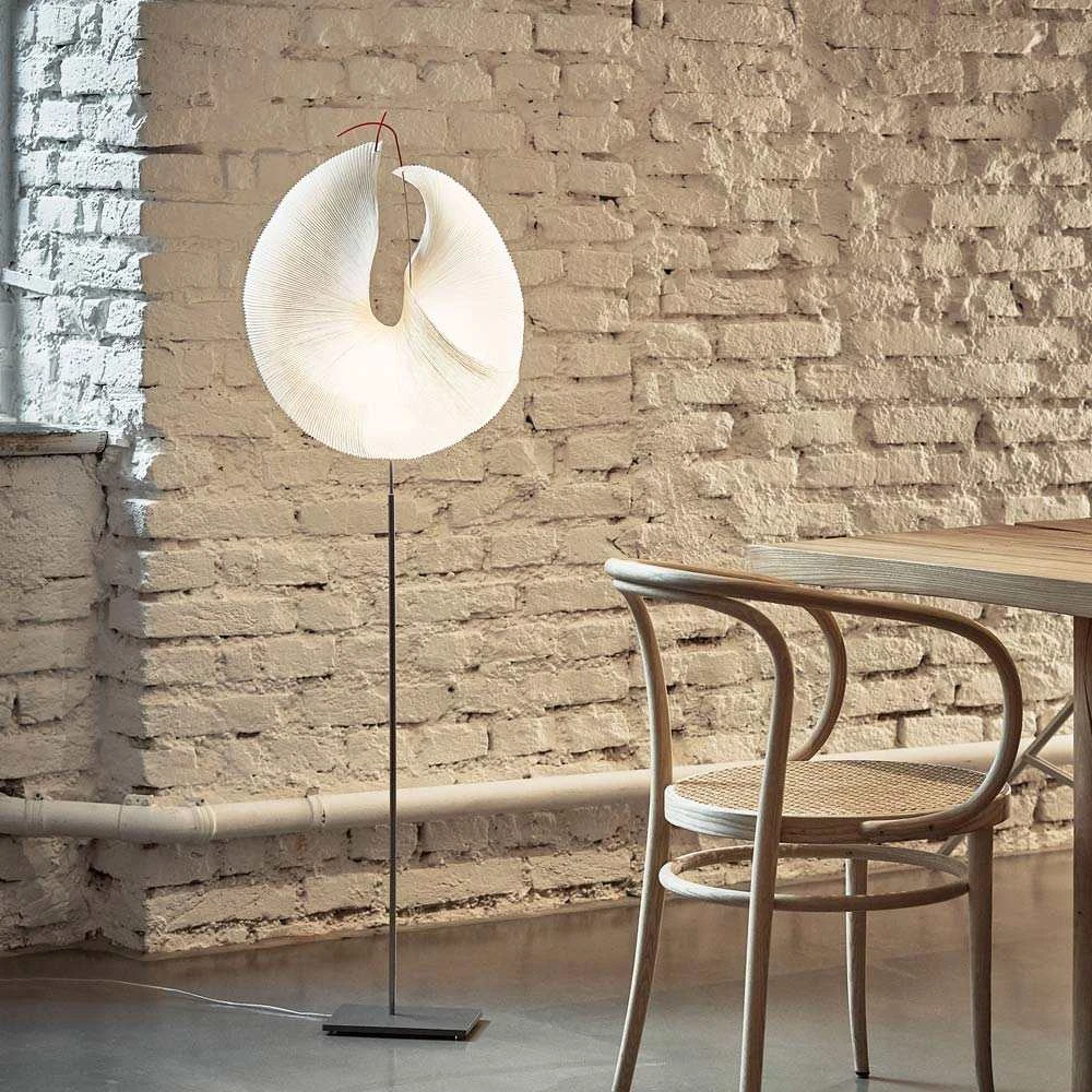 Scrumptious organic flavor rests at the heart of an artisan aesthetic as the Yoruba Rose LED Floor Lamp from Ingo Maurer satisfies a craving for glam simplicity. Raw materials include Japanese paper with a textured surface and studio manipulation to reinforce its integrity. Exquisite shaping of its shade and a minimalist metal stand counteract one another to set up an intriguing mix.