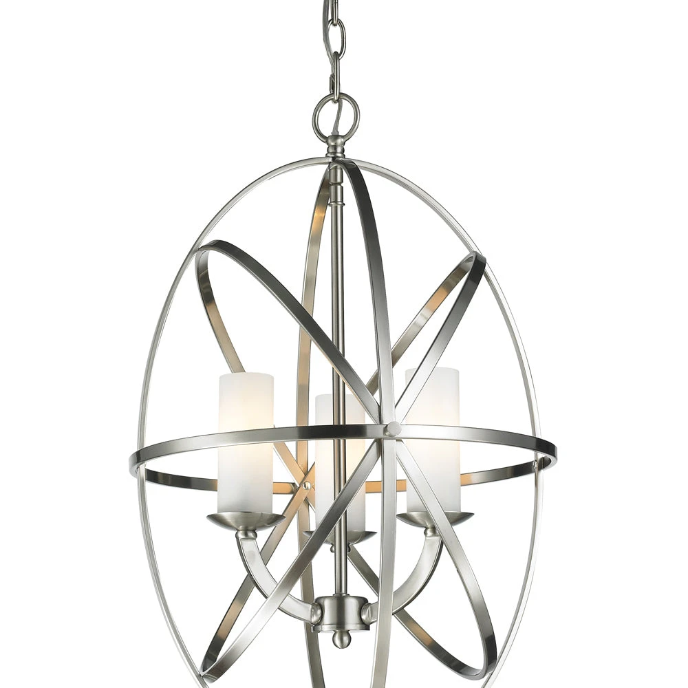 We love the timeless atomic vibe of the Aranya Chandelier from Z-Lite, an exceptionally versatile and whimsical look perfect for any space. Brushed nickel finish metal creates an oval openwork ring frame with thicker ellipse bands adding a busy aesthetic. Light glows through chic matte opal glass shades, creating a decadent look.