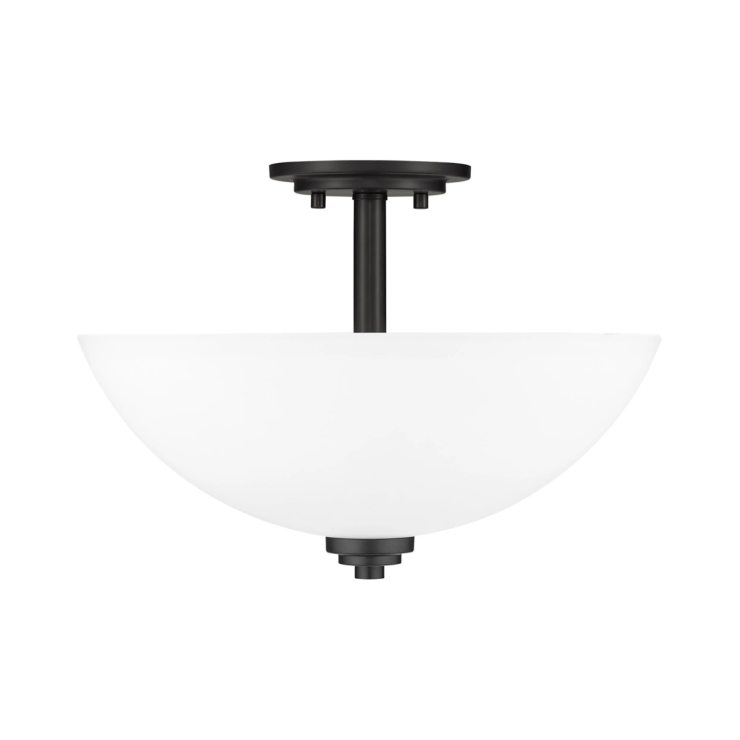 The Ashton Round Semi Flush Mount Ceiling Light from Z-Lite offers a host of elegant elements, including a key separation important to refine its Mid-Century Modern aesthetics. Layered steel discs fashion a canopy and finial collection, with a delectable matte opal glass dome shade sitting in between. This fixture offers a timeless aesthetic that works in industrial and farmhouse motifs.