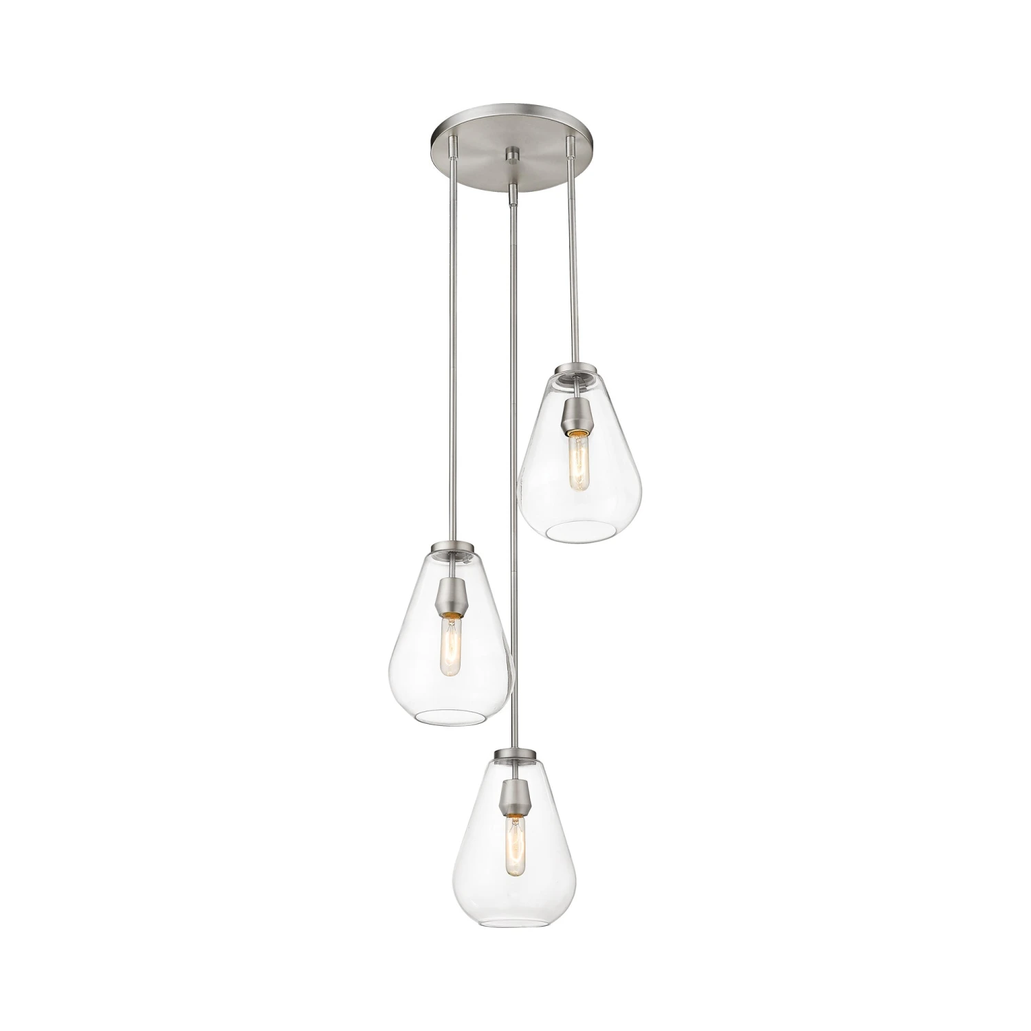 An ethereal rain shower configuration is both elegant and versatile as the Ayra Multi-Light Pendant Light from Z-Lite creates artisan flavor to any space. This chic fixture features steel elements including a circular canopy and variable arm lengths, fashioning an optical delight. Clear glass pear-shaped shades embellish its glam vibe.