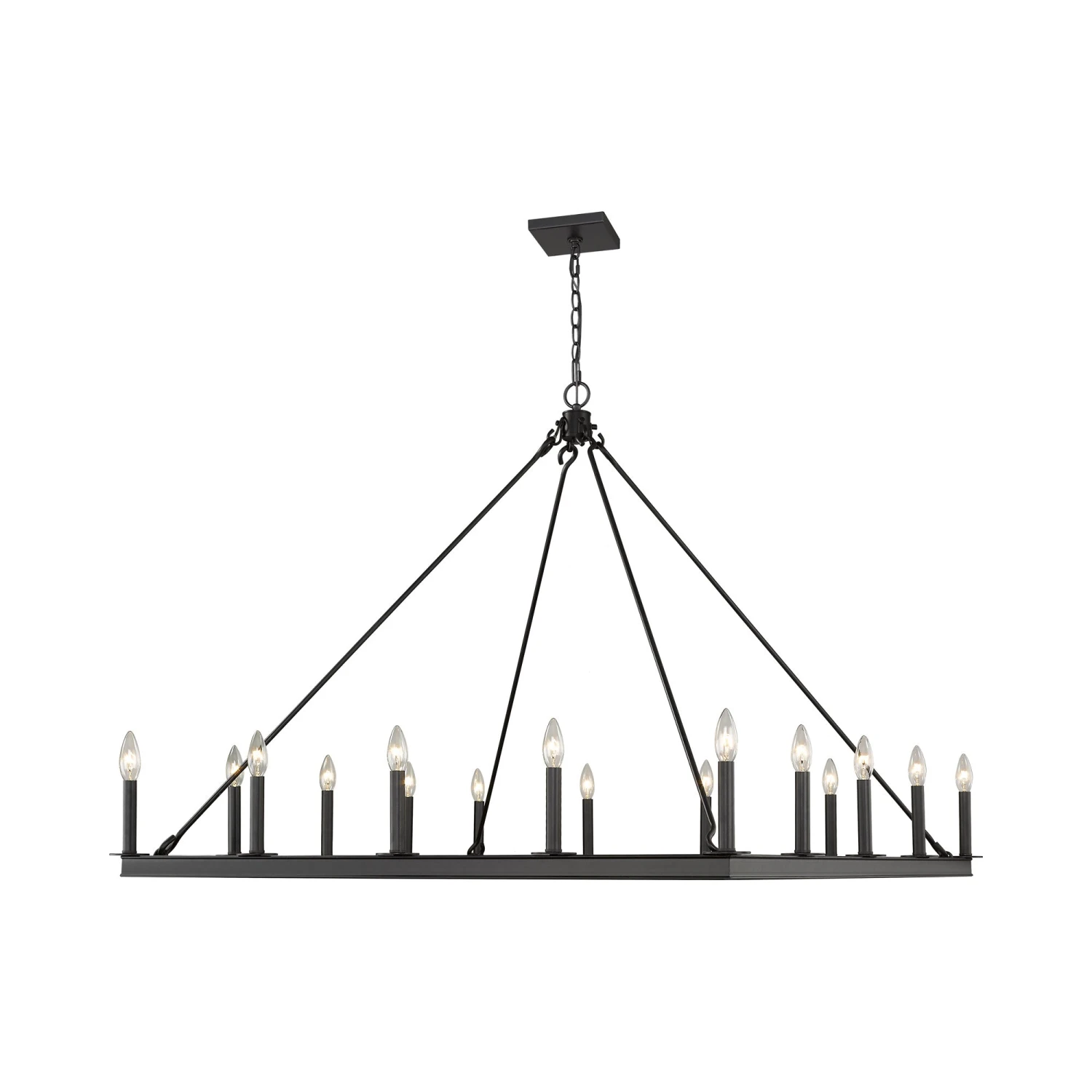 An unanticipated motif exudes bold style as the Barclay Square Chandelier from Z-Lite creates detail-rich style. Illuminate a dining space, foyer, or main living area with a matte black steel fixture bringing both palace and farmhouse inspiration and a bit of industrial attitude. Torpedo lights soften the mood of a light fixture you’ll love.