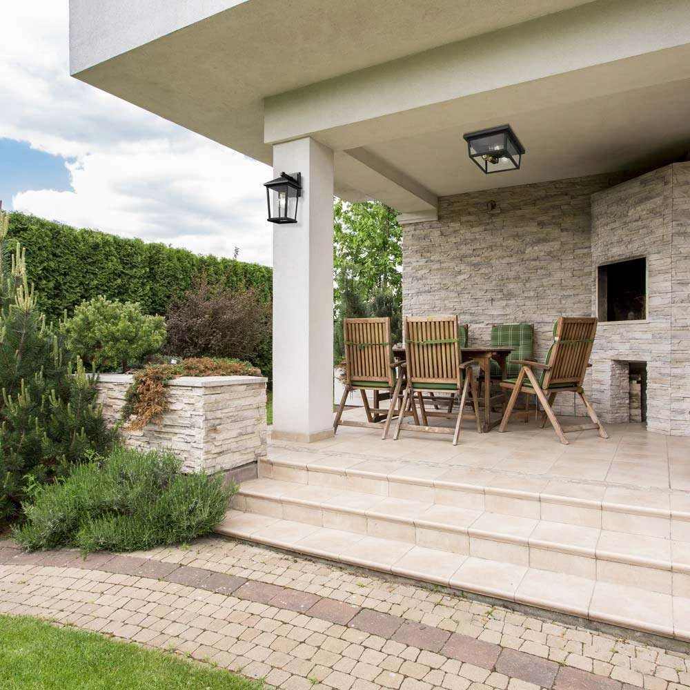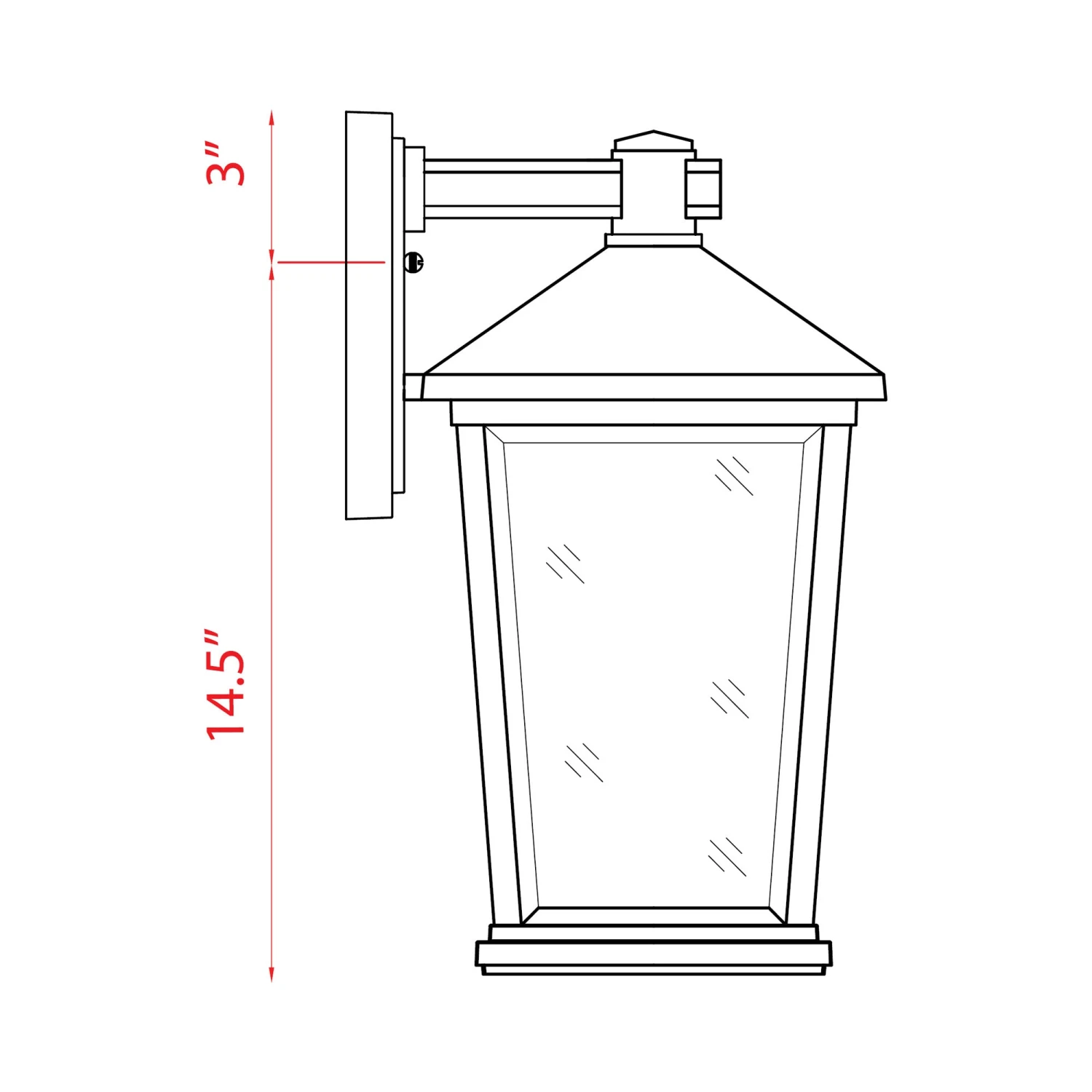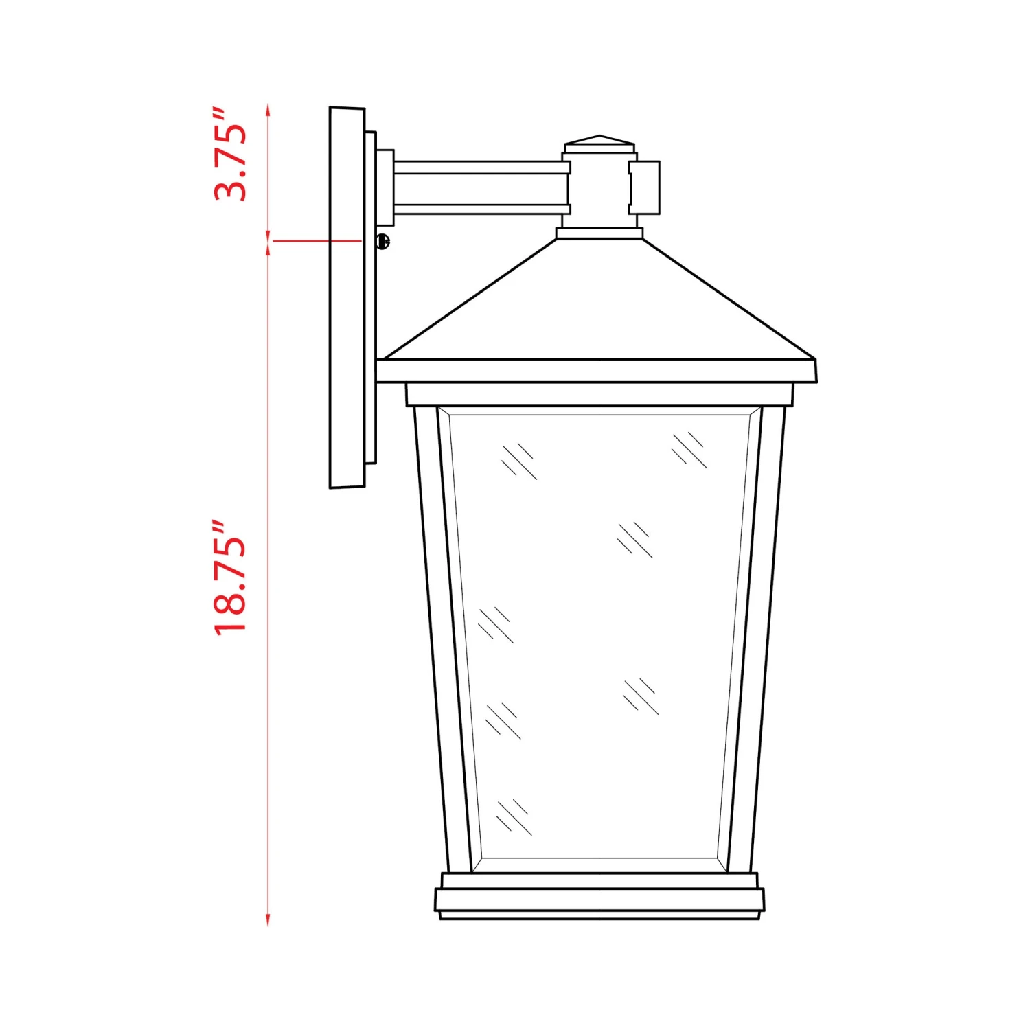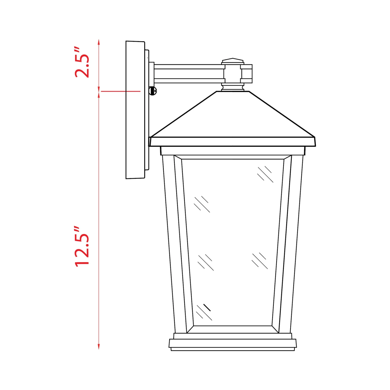 The appearance of simplicity translates to an updated lantern motif as the Beacon Outdoor Wall Light from Z-Lite flatters both commercial and residential structures. Aluminum framing creates a tapered silhouette topped with a peaked roof, as clear beveled glass panels cover romantic candelabra-style lighting.