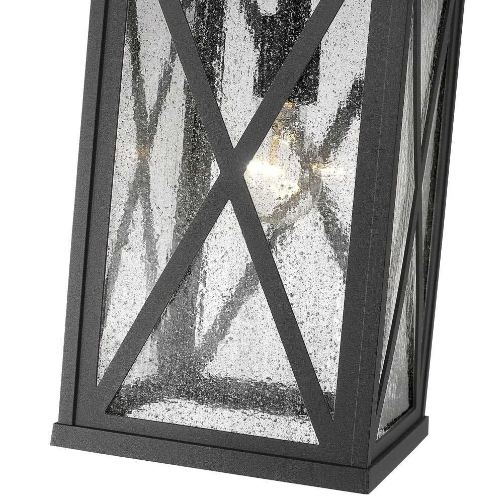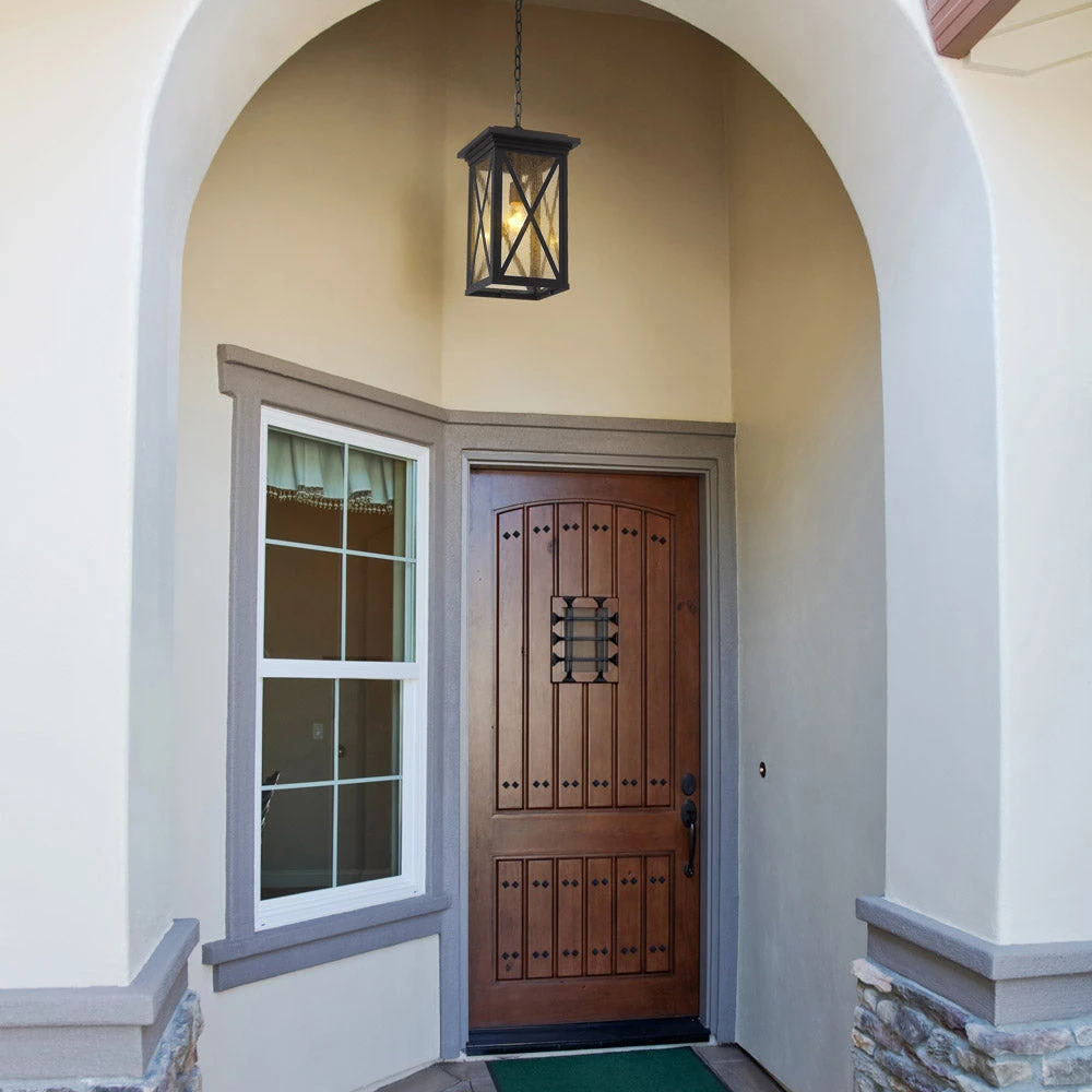 Introduce character and inviting charm with the modern farmhouse flair of the Brookside Outdoor Pendant Light from Z-Lite. Cross strapping adds barn-inspired character to the fixture, which features rectangular panels of clear seedy glass that softly diffuse illumination for inviting flair. It’s the perfect choice over a welcoming entryway or patio living space.