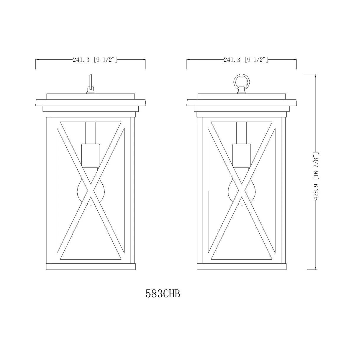 - Fixture Dimensions: 9.5″W X 16.88″H