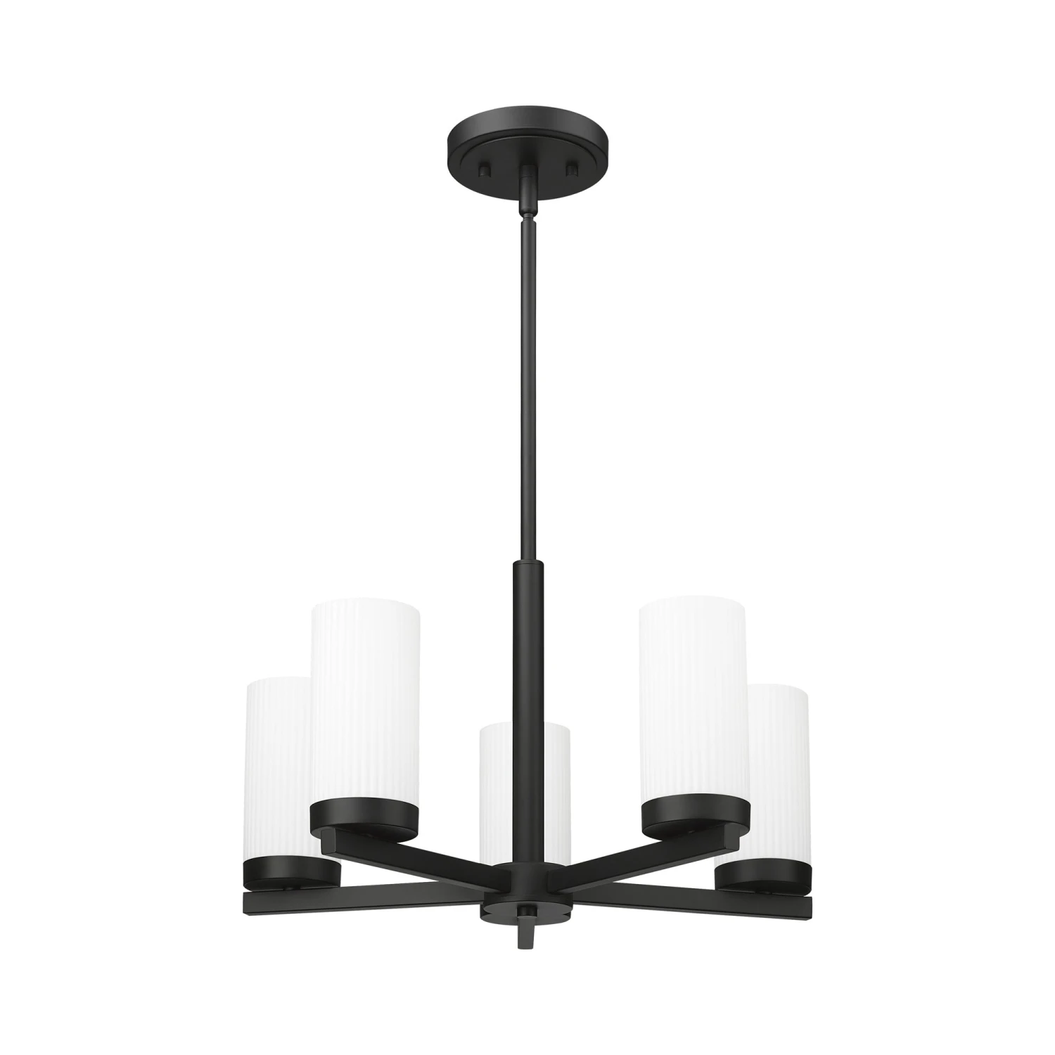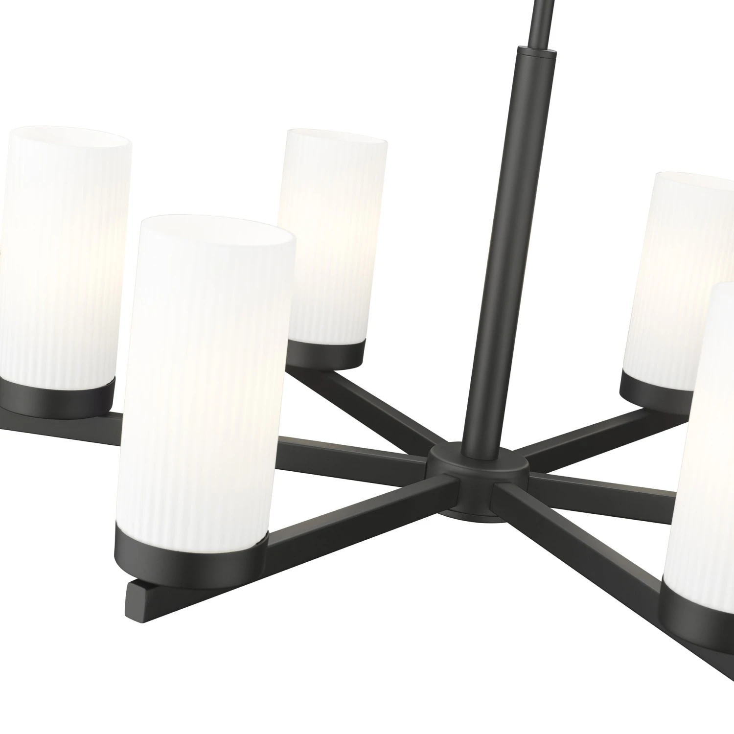 Contrast and structure create an impressive statement of interior lighting when the Danica Chandelier from Z-Lite offers a classic contribution to contemporary settings. Metal framing arranges white glass cylinder shades evenly, setting up an attractive design motif with superb versatility.