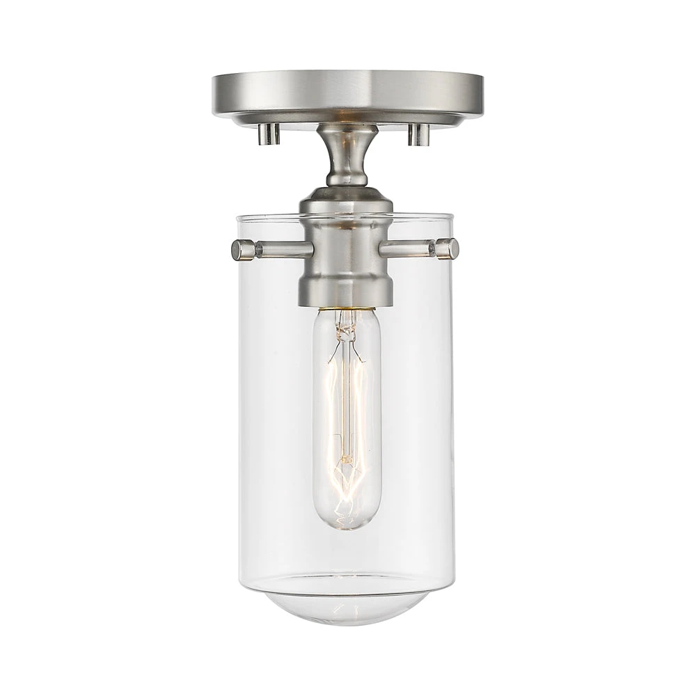 Simplicity sets the tone for the Delaney Semi-Flush Mount Ceiling Light from Z-Lite. It’s infused with the casual elegance of industrial design inspirations, pairing a delicate clear glass shade with a tubular light and simple lamping. It’s the perfect choice for compact spaces.