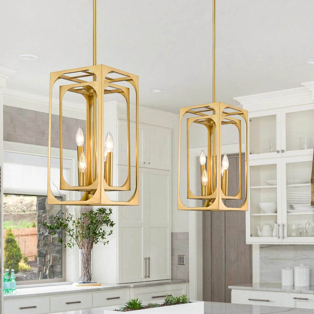 Corner braces add decorative detail to the double open rectangular frame design of the Easton Chandelier from Z-Lite. Its layered approach to modern design sets the tone in your entry, living or dining room, while a decorative finish adds depth to its artistry.