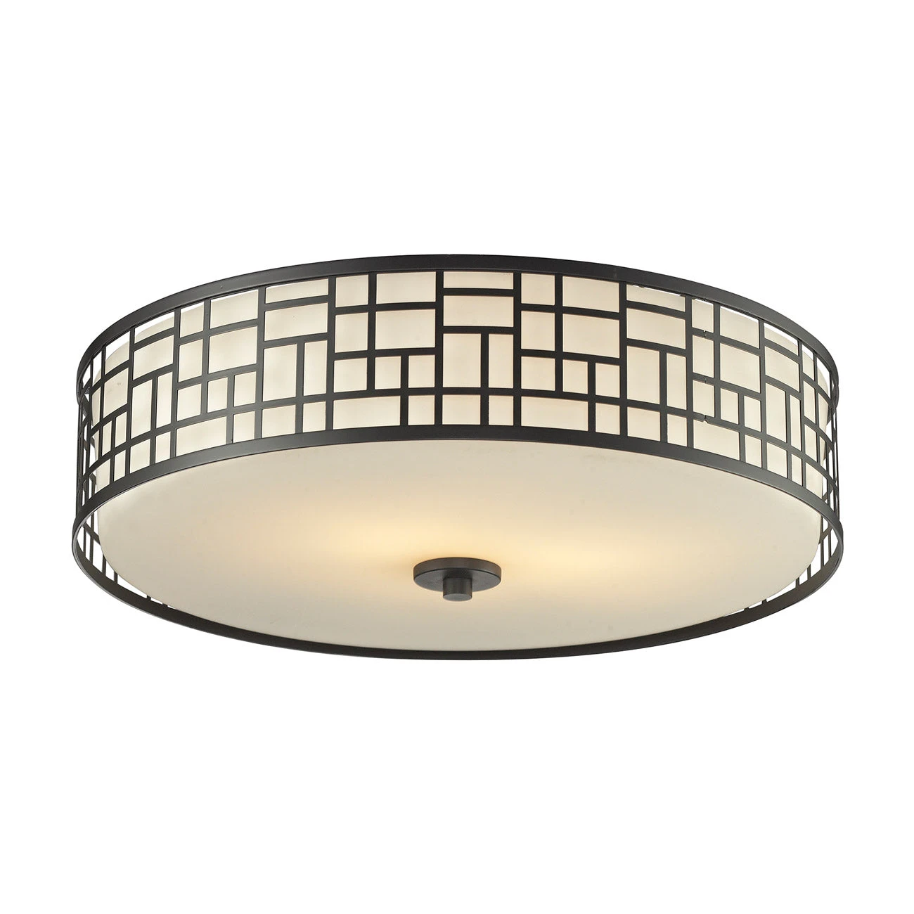 A graphic overlay brings geometric flair to the drum shade of the Elea Flush Mount Ceiling Light from Z-Lite. Its matte opal glass inner diffuser ensures delightful, soft illumination, perfect for everything from living room seating areas to bedrooms and dens.