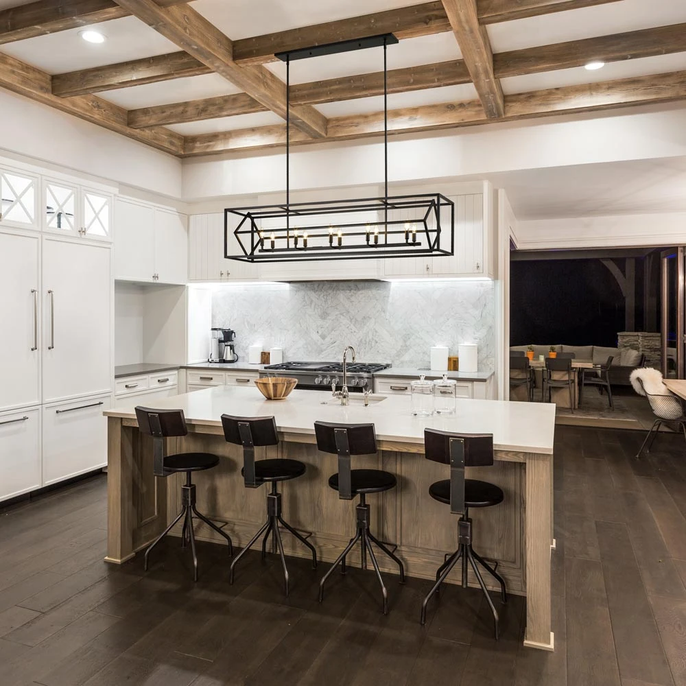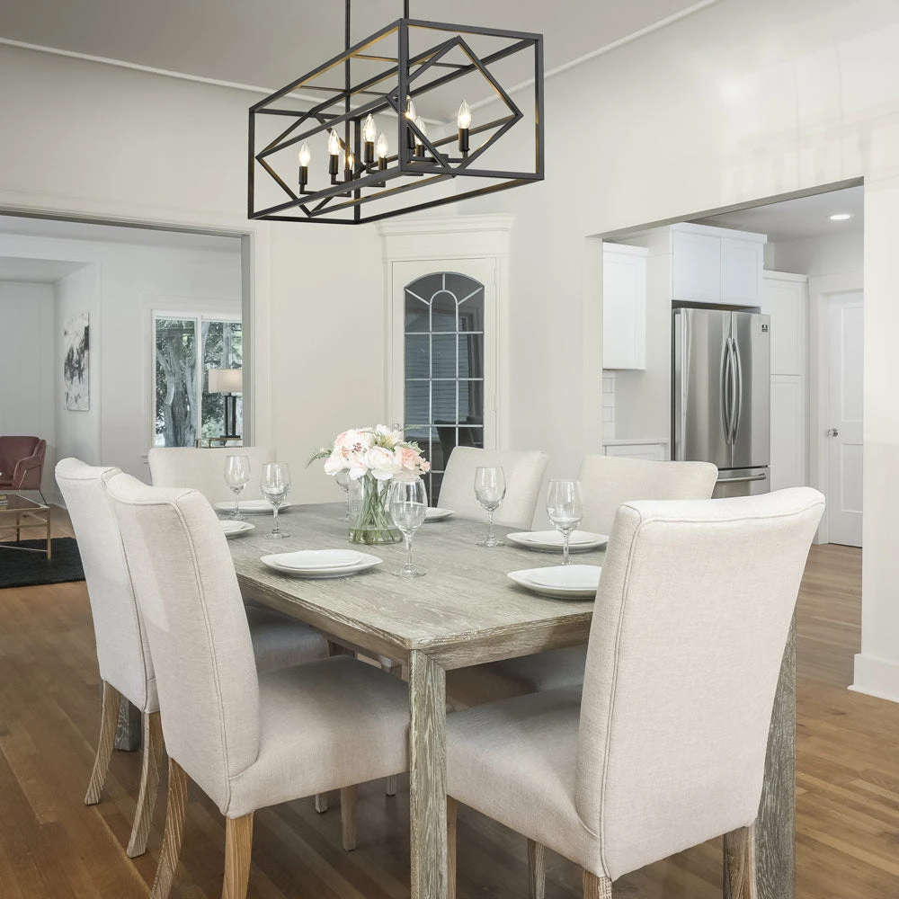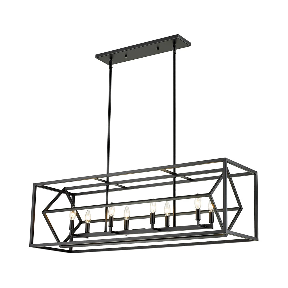 Rotation on the linear access creates intriguing style and depth for the Euclid Linear Chandelier from Z-Lite. It’s a bold choice, perfect for a kitchen island or dining room table. The fixture offers multiple candelabra lights, each unshaded to ensure bright illumination and inviting ambiance.